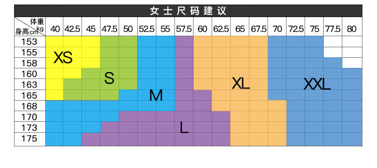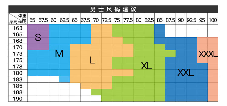 China (cm) 160-165/84-86 165-170 / 88-90 167-172 / 92-96 168-173 / 98-102 170-176 / 106-110