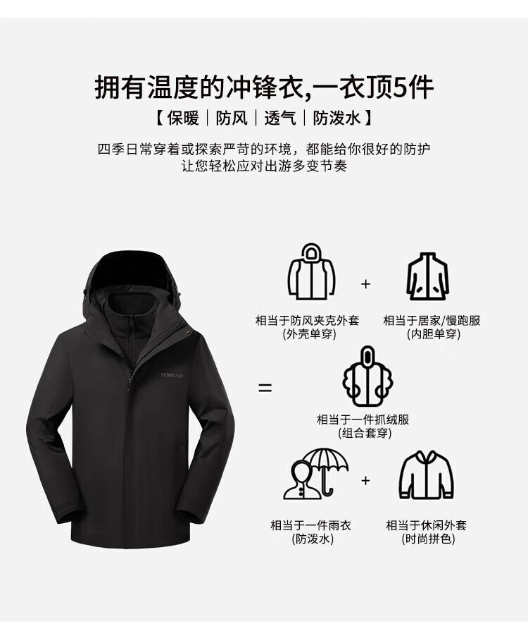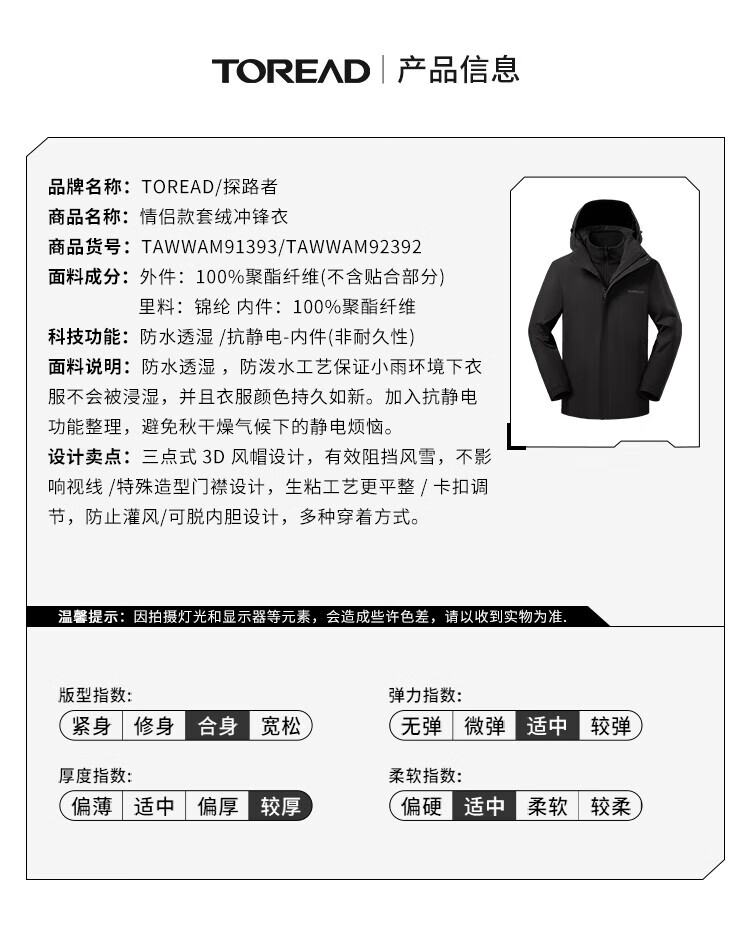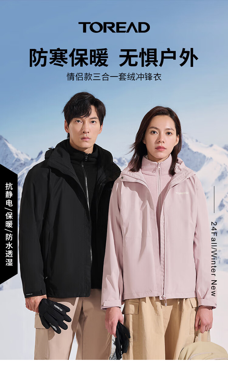Pathfinder (TOREAD) Jacket Autumn and Winter Couple Three-in-One Fleece Removable Waterproof Two-piece Mountaineering Suit TAWWAM91393