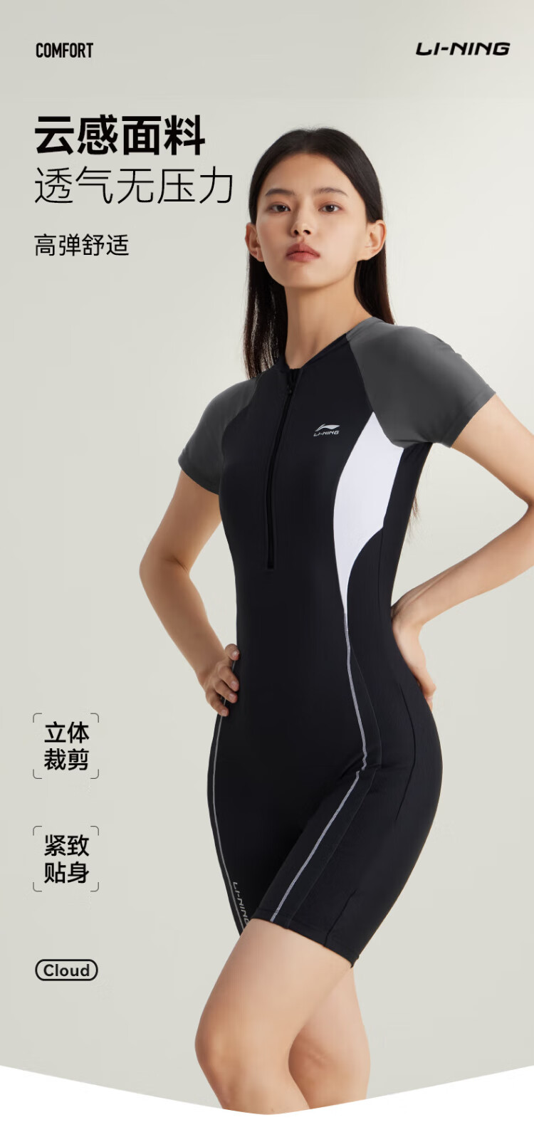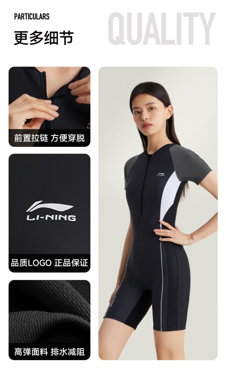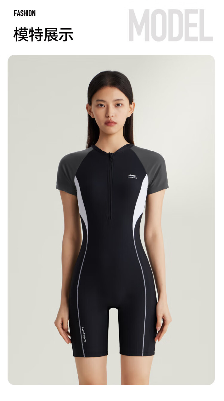 Li Ning (LI-NING) swimsuit women's professional one-piece three-quarter swimsuit high elasticity anti-chlorine training swimsuit 7541 black and white XXL