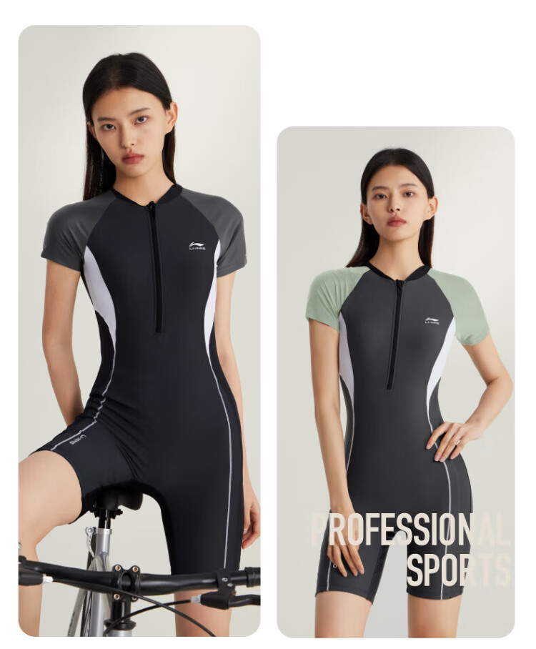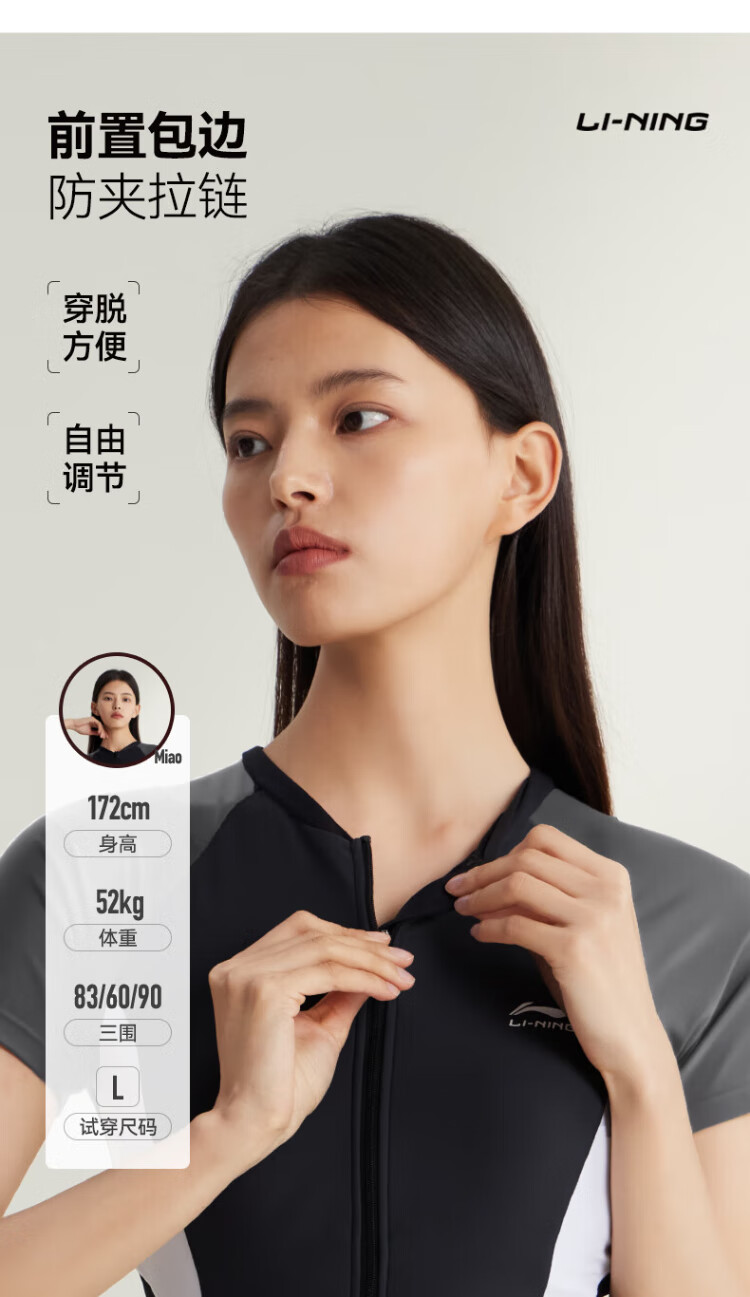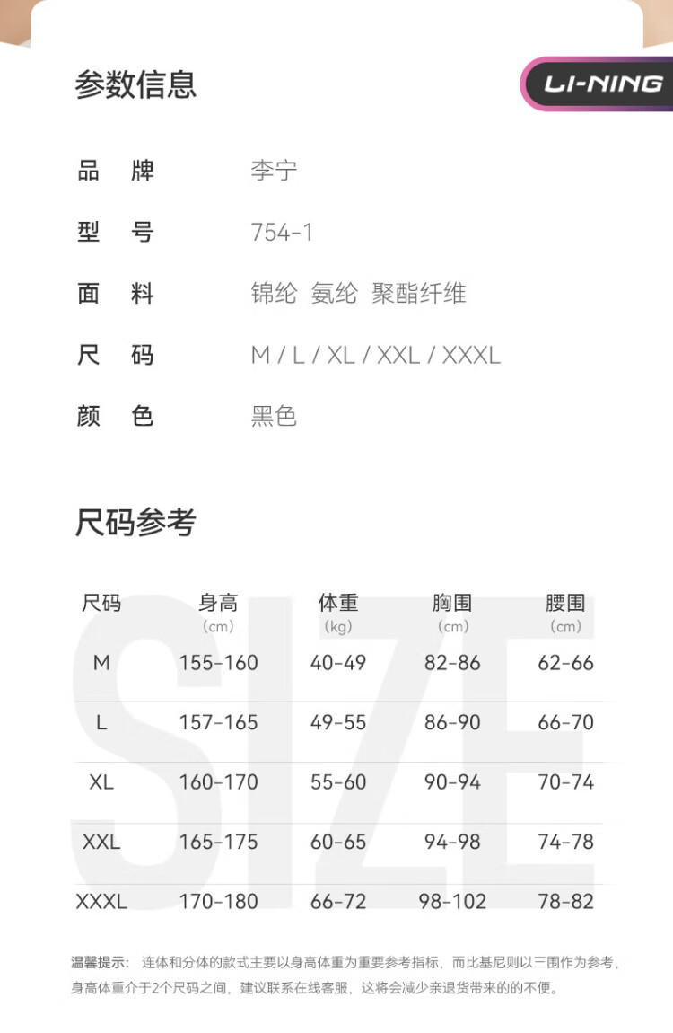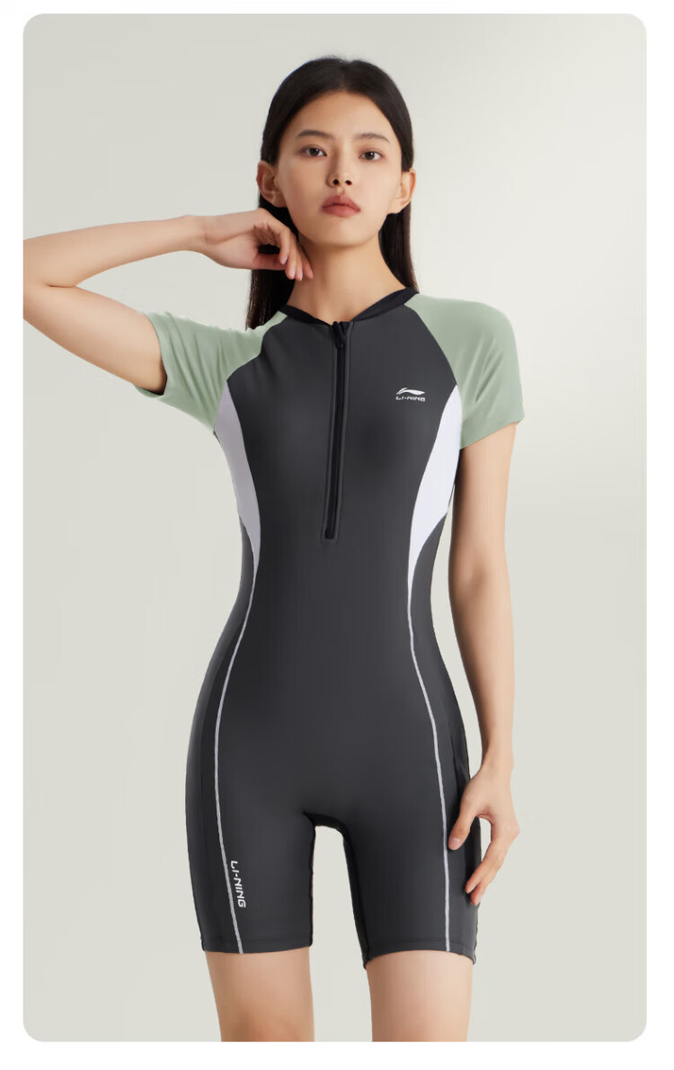 Li Ning (LI-NING) swimsuit women's professional one-piece three-quarter swimsuit high elasticity anti-chlorine training swimsuit 7541 black and white XXL