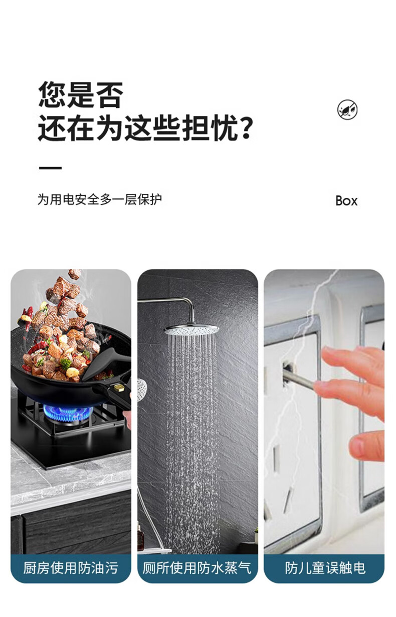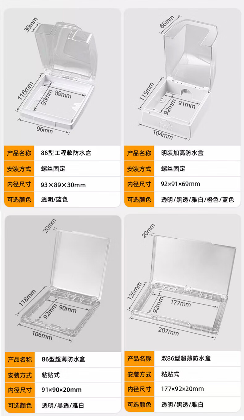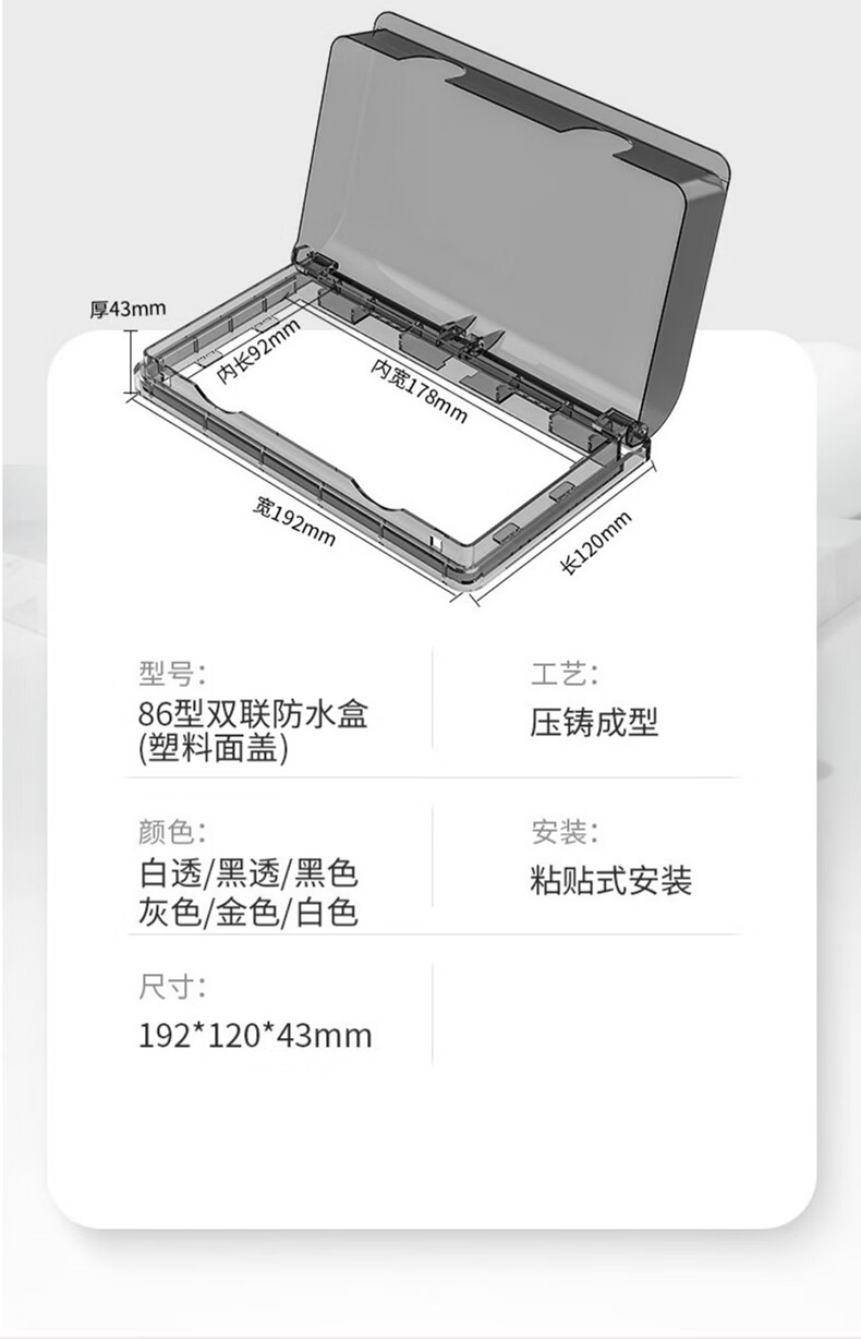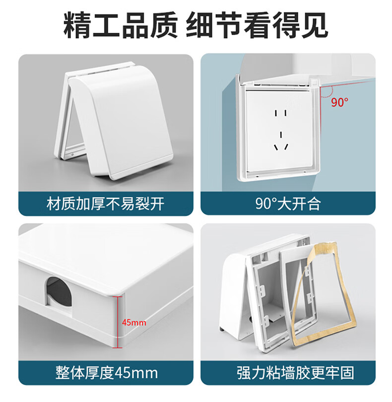 Tianshili Type 86 Bathroom Socket Waterproof Box Waterproof Cover Bathroom Socket Protective Cover Splash-proof Box Ultra-Thin White Paste Type (5 Pack)