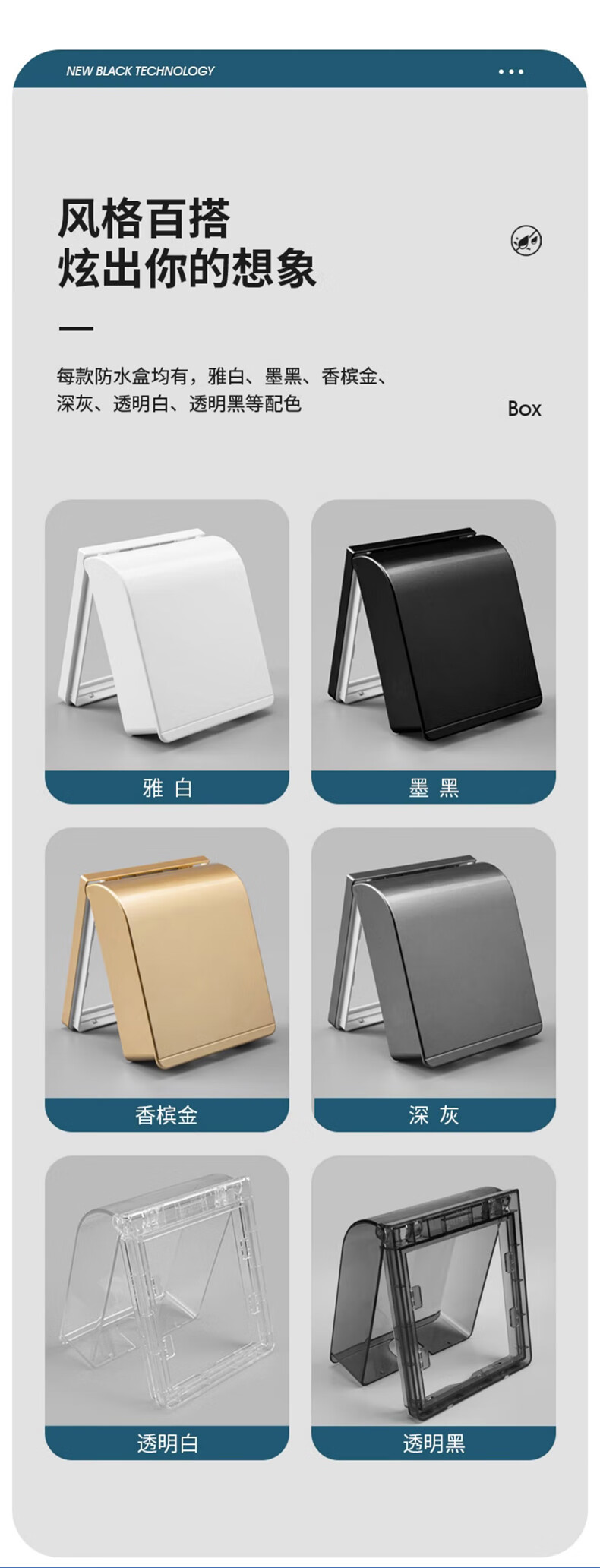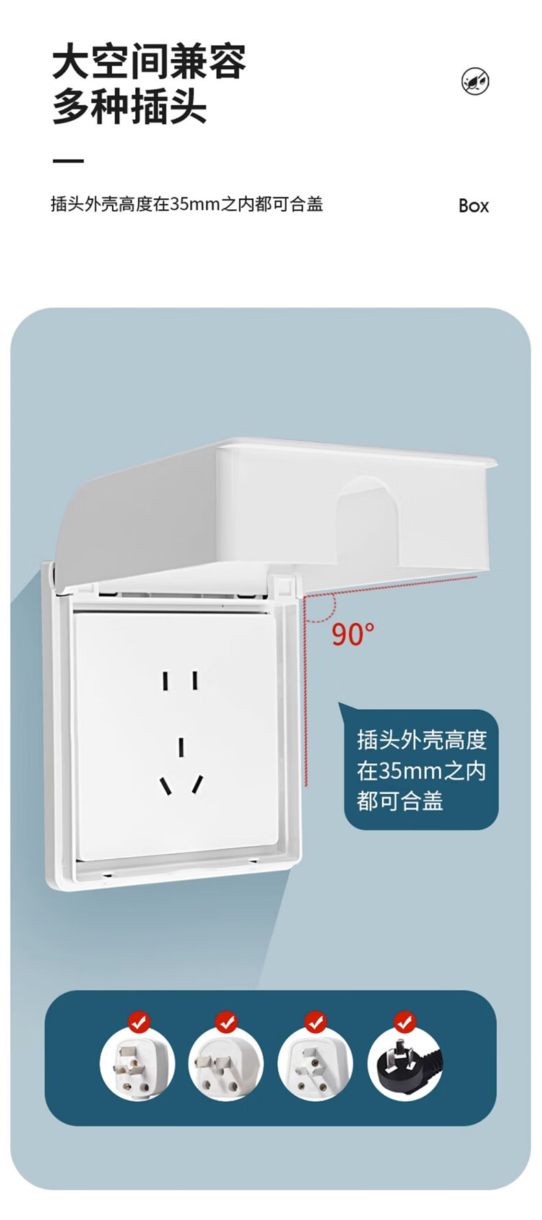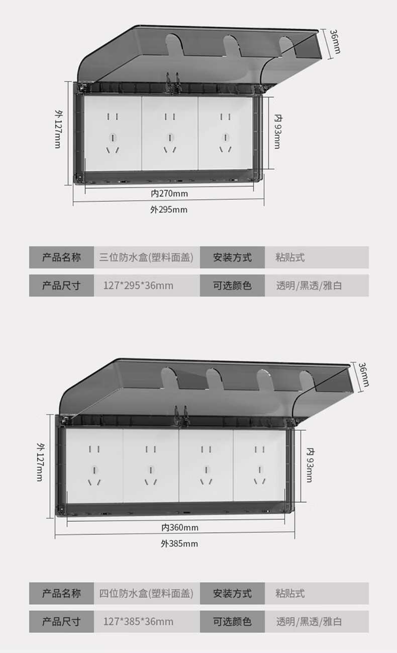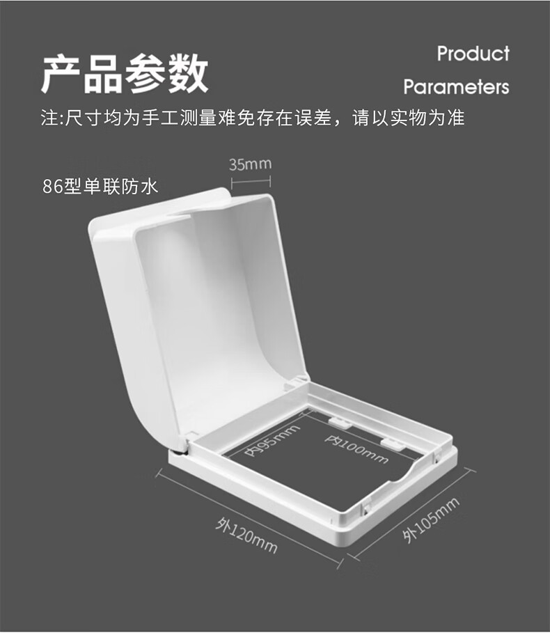 Tianshili Type 86 Bathroom Socket Waterproof Box Waterproof Cover Bathroom Socket Protective Cover Splash-proof Box Ultra-Thin White Paste Type (5 Pack)