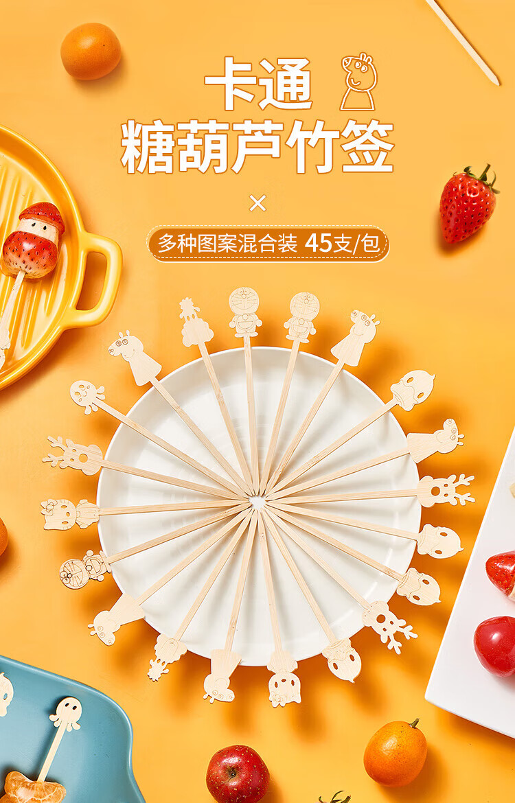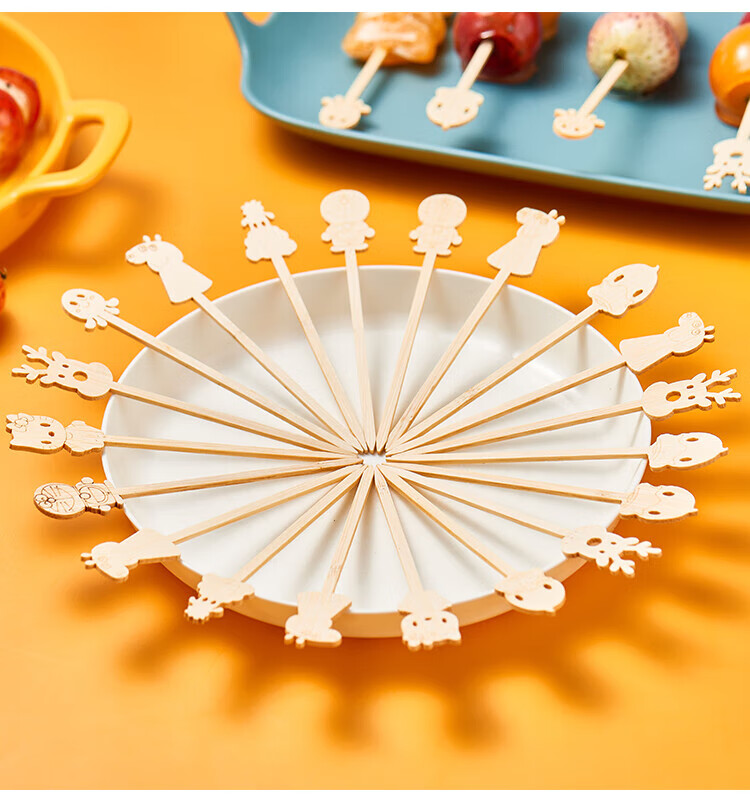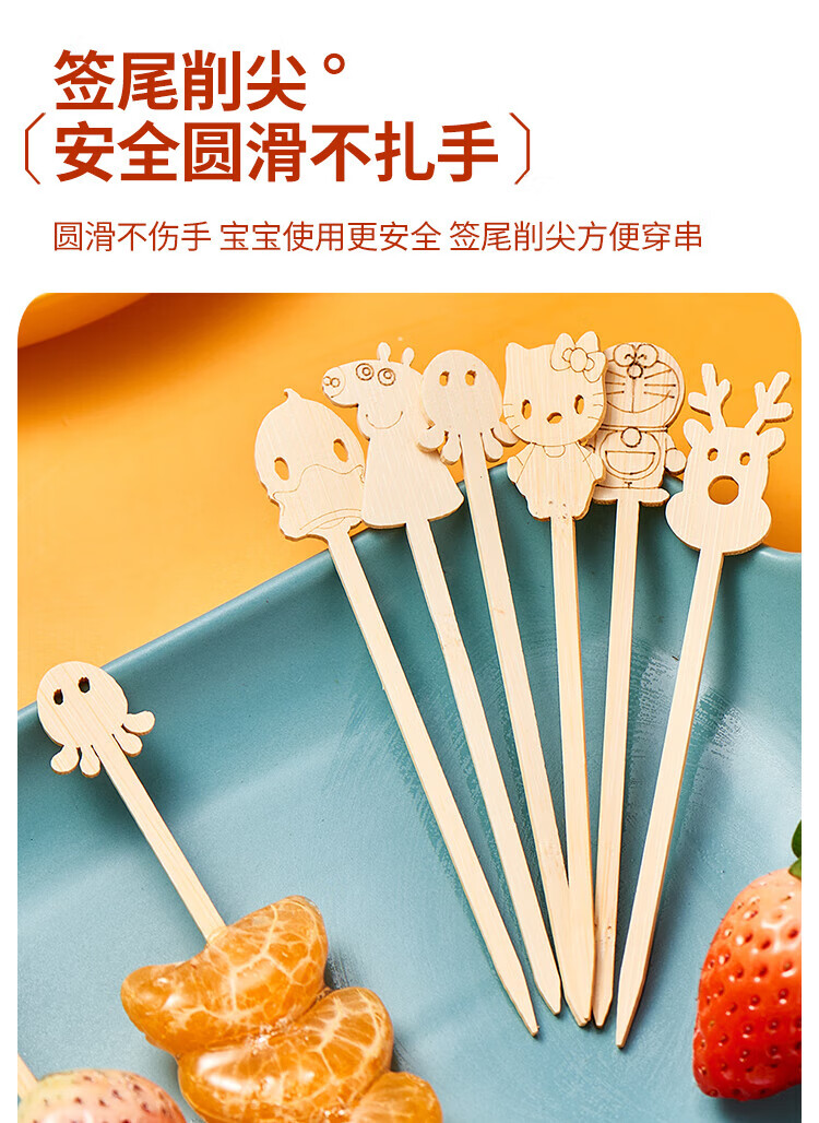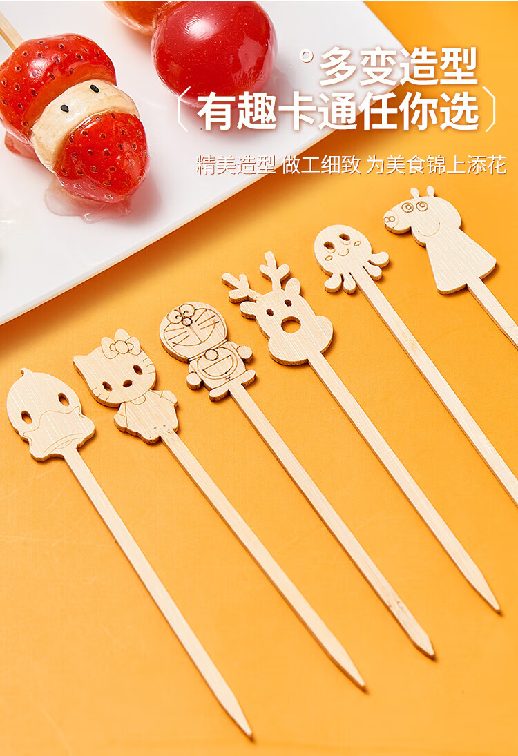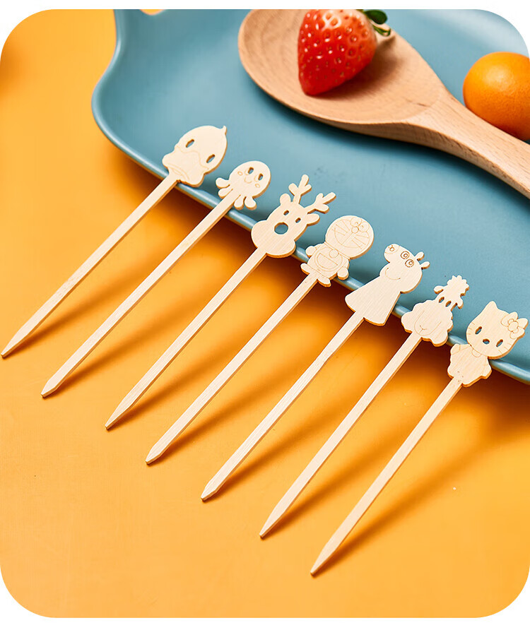 Suncojia Cartoon Disposable Fruit Picks Dessert Plate Display Pastry Picks Cute Cartoon Exquisite Bamboo Picks About 45 Count