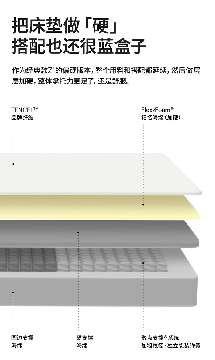 Blue Box Z1 small stone memory foam spine independent spring mattress double Simmons offline same model 1.5*2 meters slightly harder