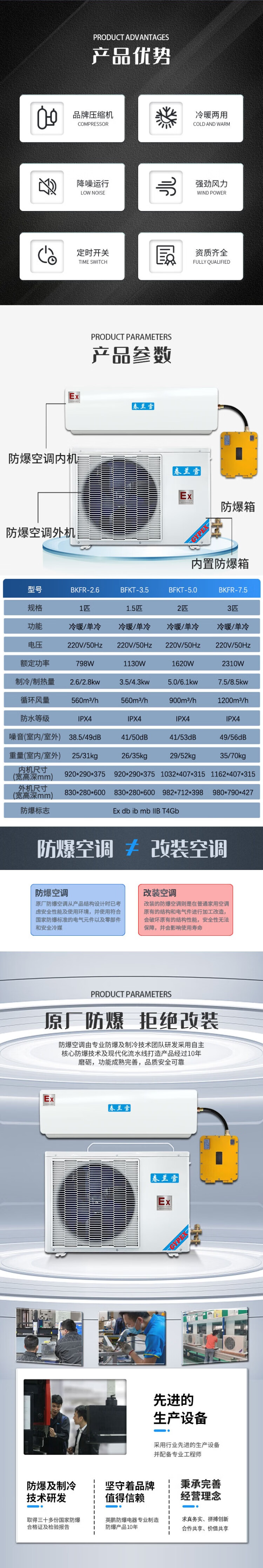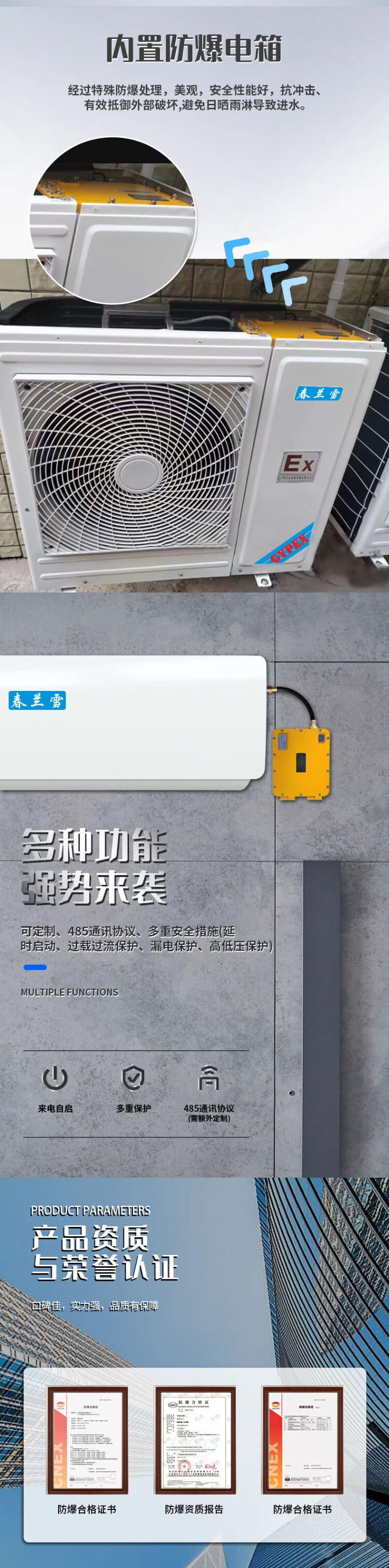 Chunlanxue explosion-proof air conditioner 1.5P wall-mounted industrial substation/pharmaceutical coating hazardous chemicals warehouse/workshop explosion-proof standard IIB T4 BFKT-3.5 1.5 HP