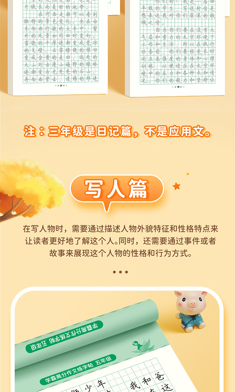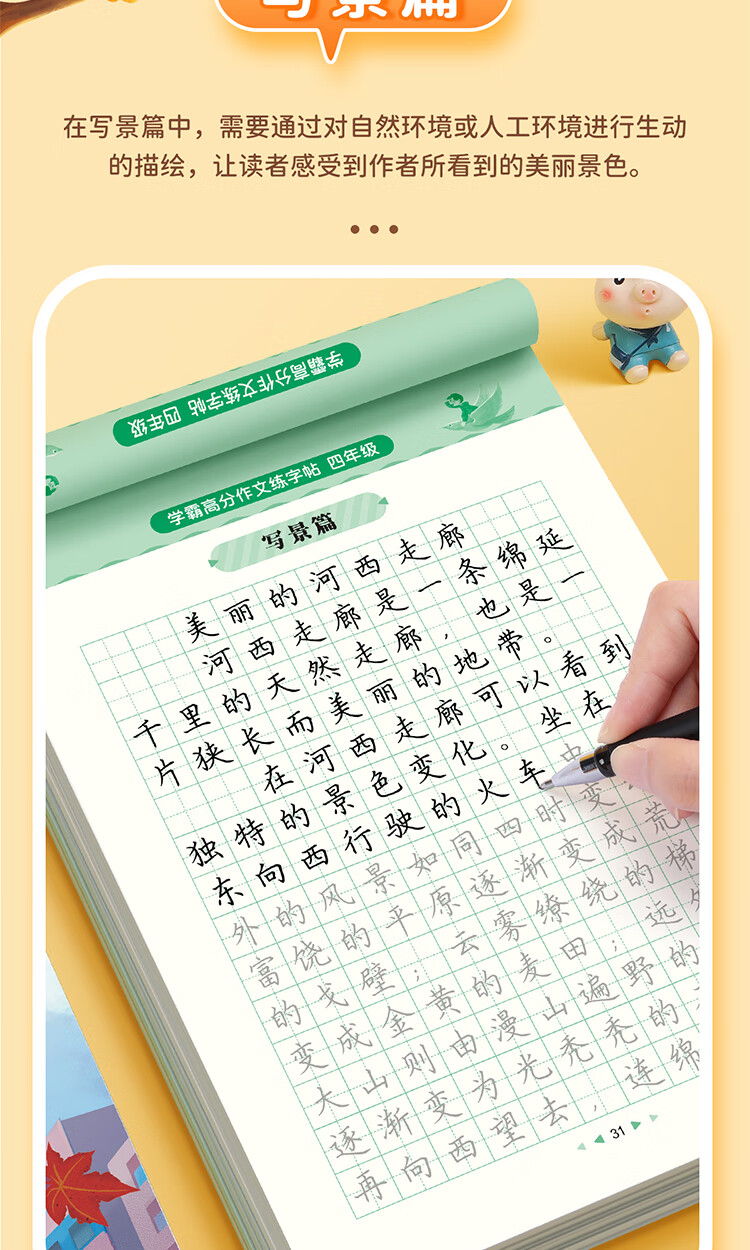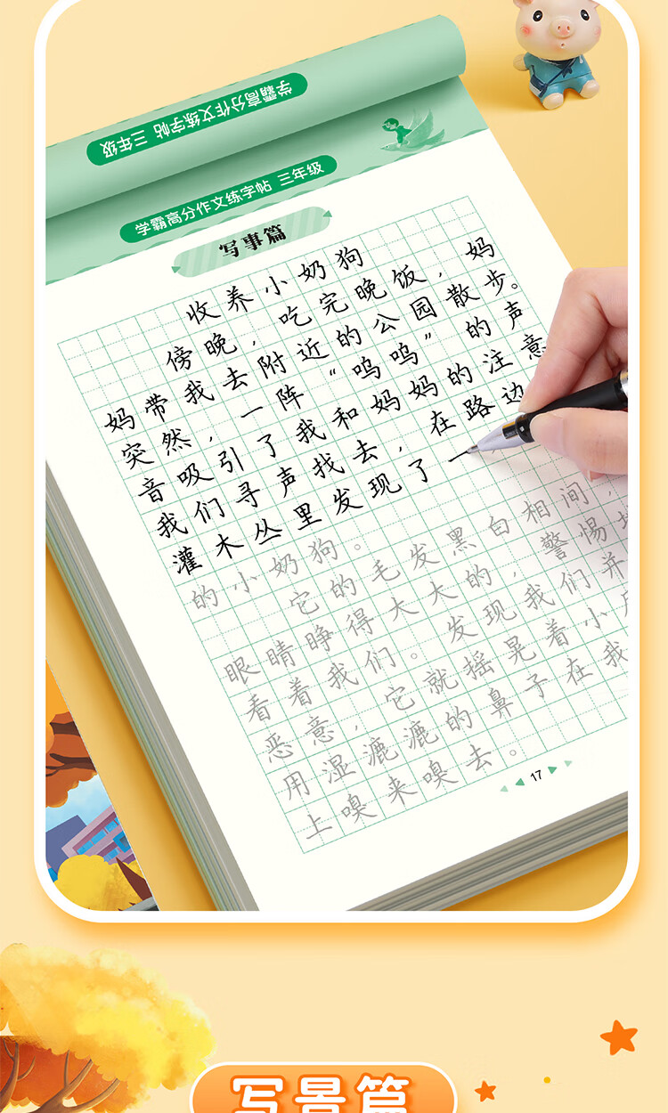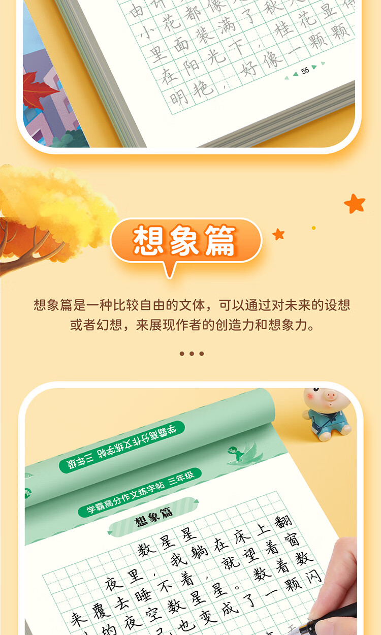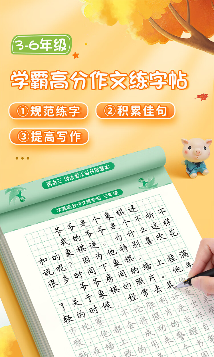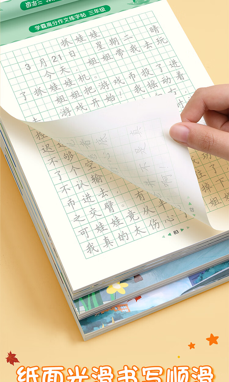 Shuxing Xueba full score composition practice copybook primary school students special copybook third grade good words and sentences composition material accumulation synchronized copybook hard pen calligraphy tracing book