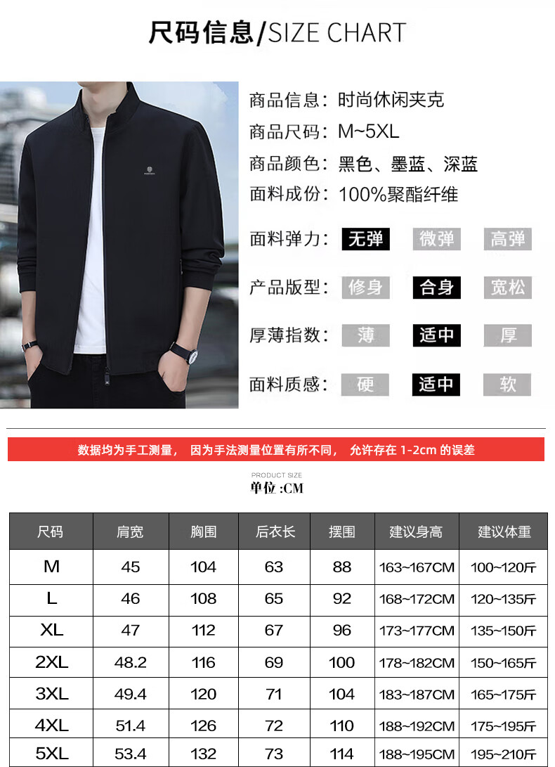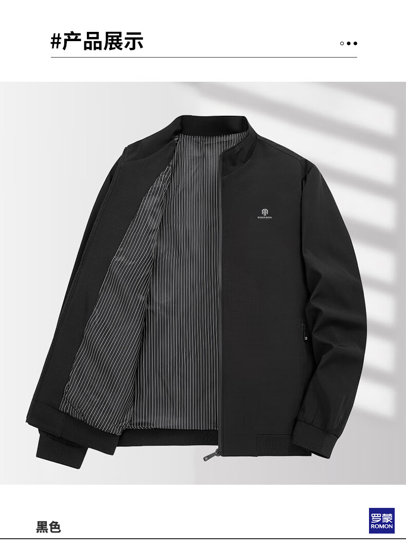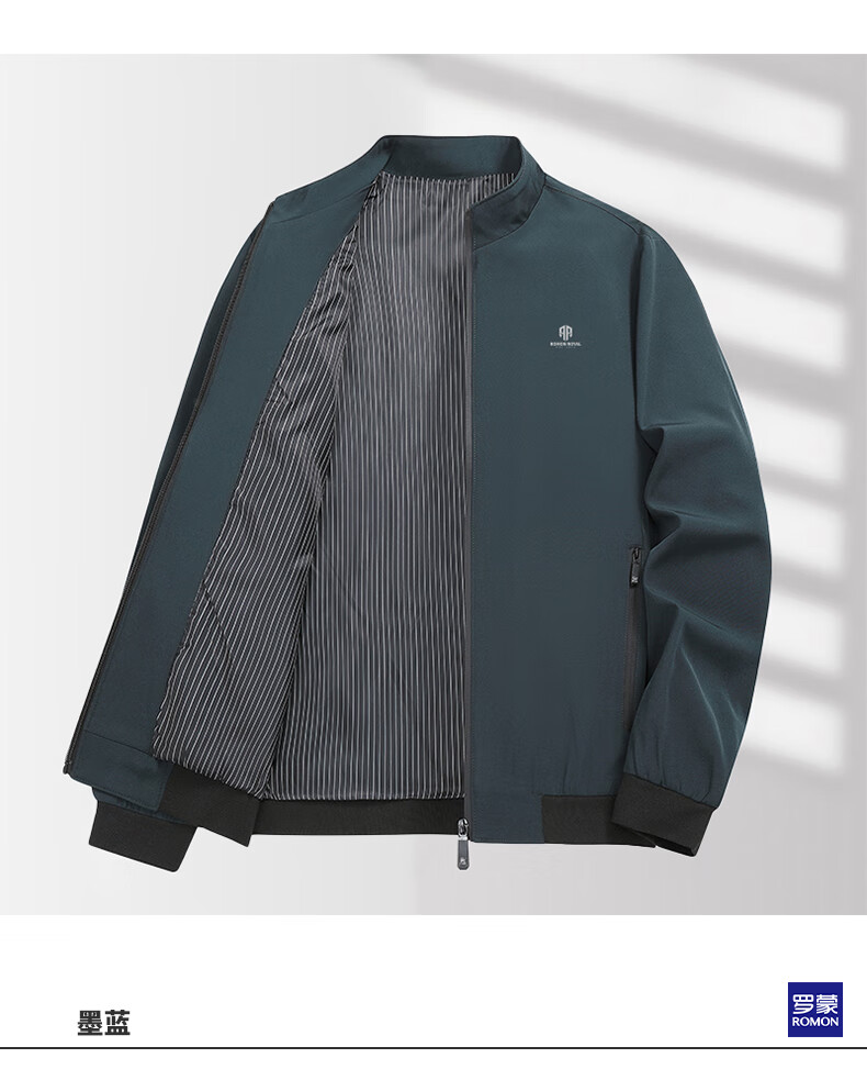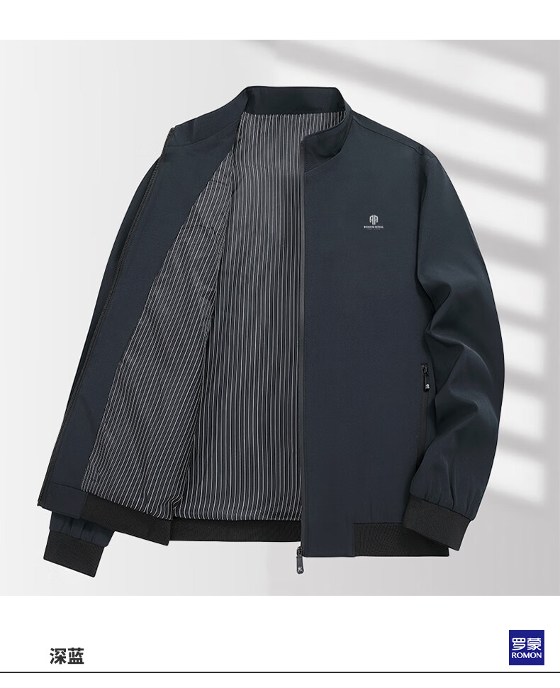 ROMON jacket men's spring and autumn coat solid color stand collar versatile executive business casual men's ii6 dark blue XL