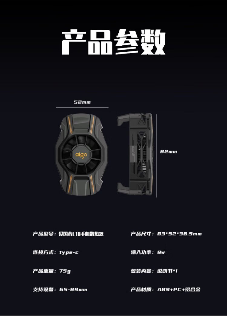 Patriot mobile phone holder radiator semiconductor refrigeration ice-sealed back clip air-cooled cooling chicken-eating artifact King Yuanshen suitable for Apple Android Xiaomi