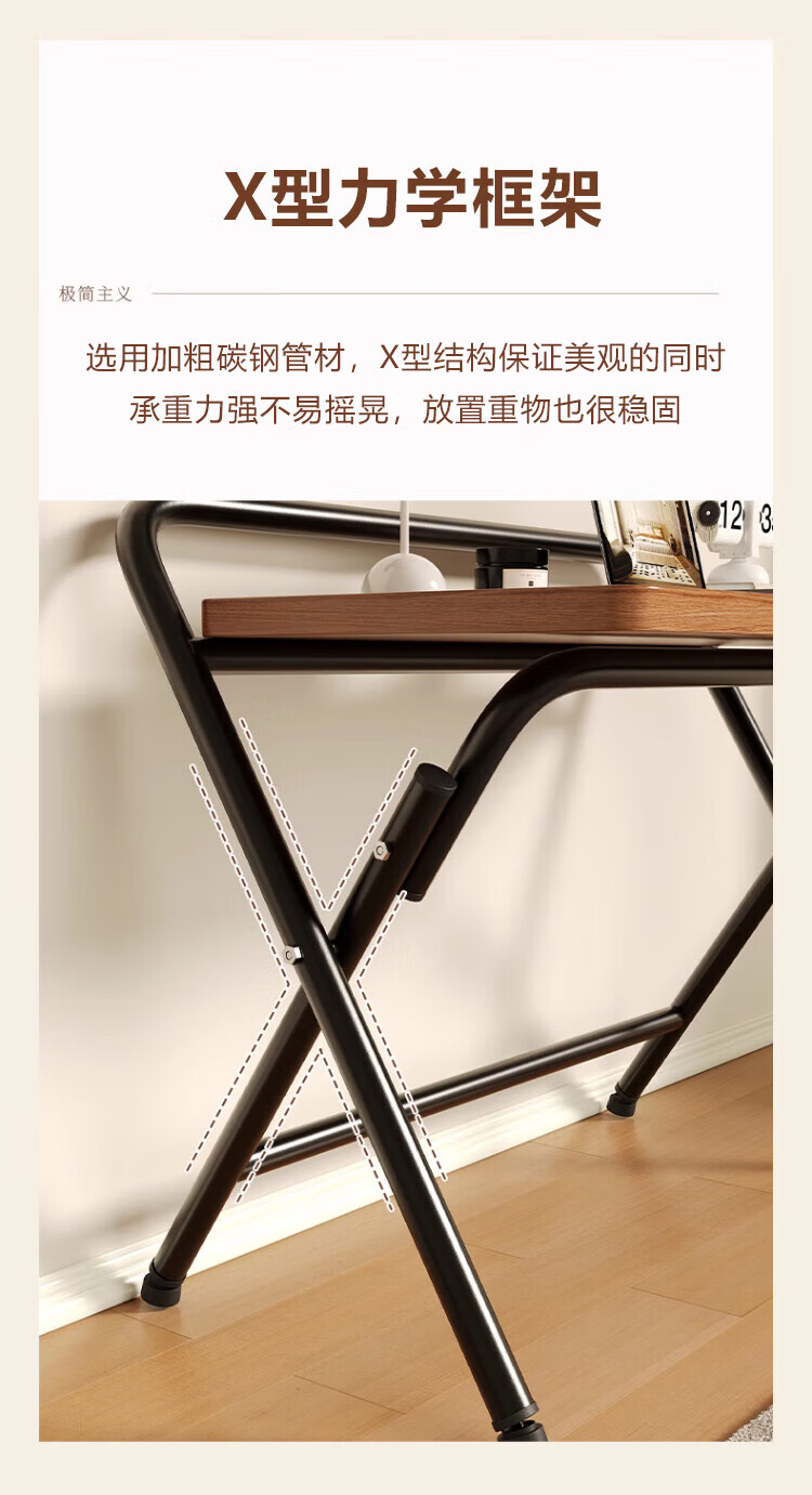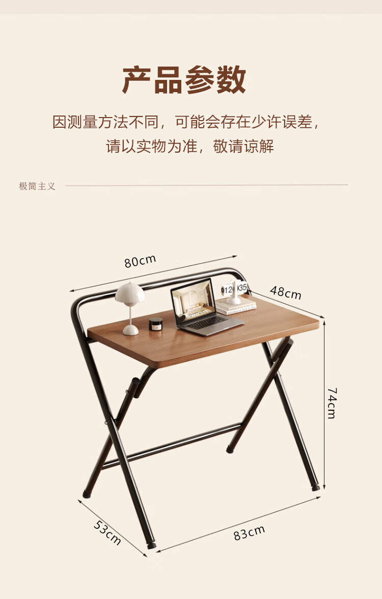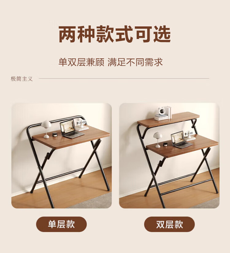 Jingcai folding table computer table simple desk study table office training table JDZ10 walnut 80*48cm single layer
