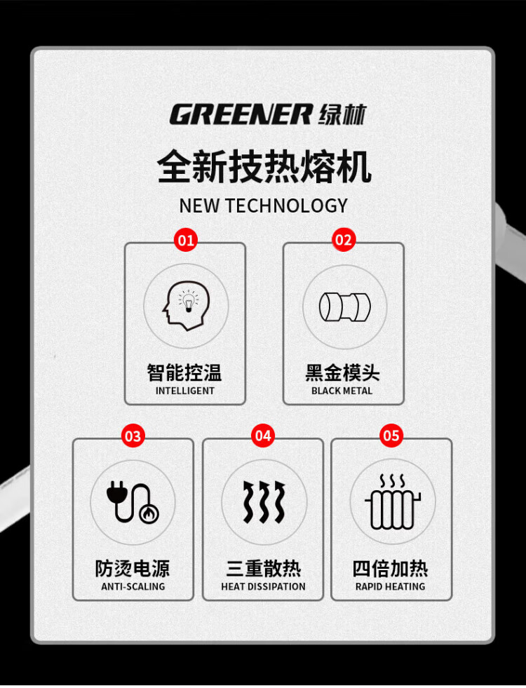 GREENER hot melter household hot melt machine 32 type constant temperature water pipe welding machine high power electric hot melt gun interface die ppr
