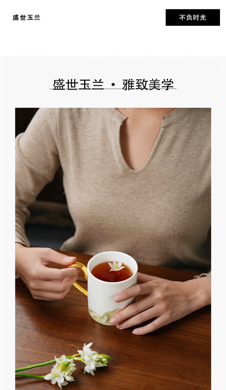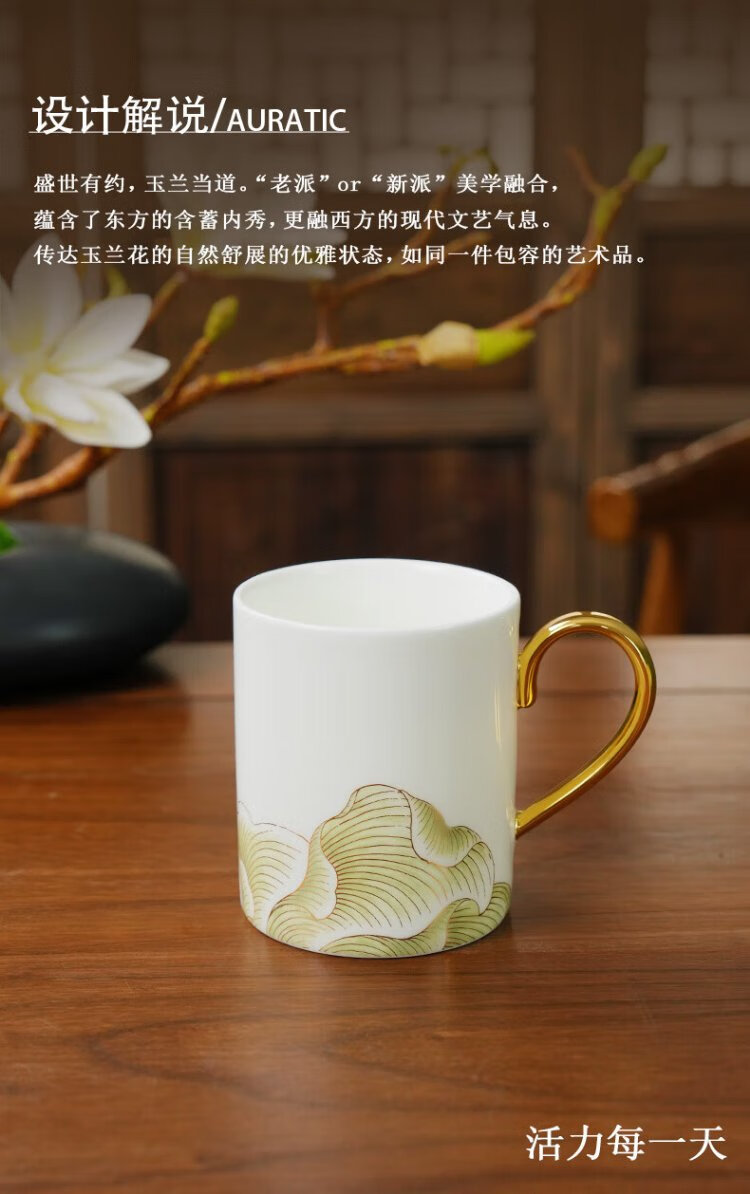 Auratic National Porcelain Yongfengyuan Madam Porcelain Magnolia 350ml Chinese Tea Cup Mug Gift Box Packaging
