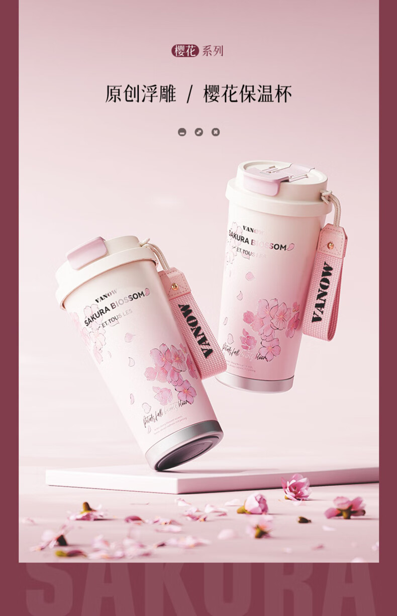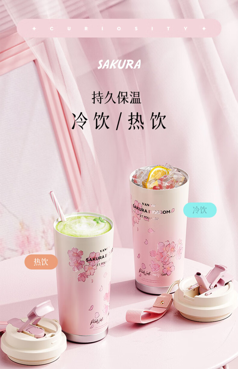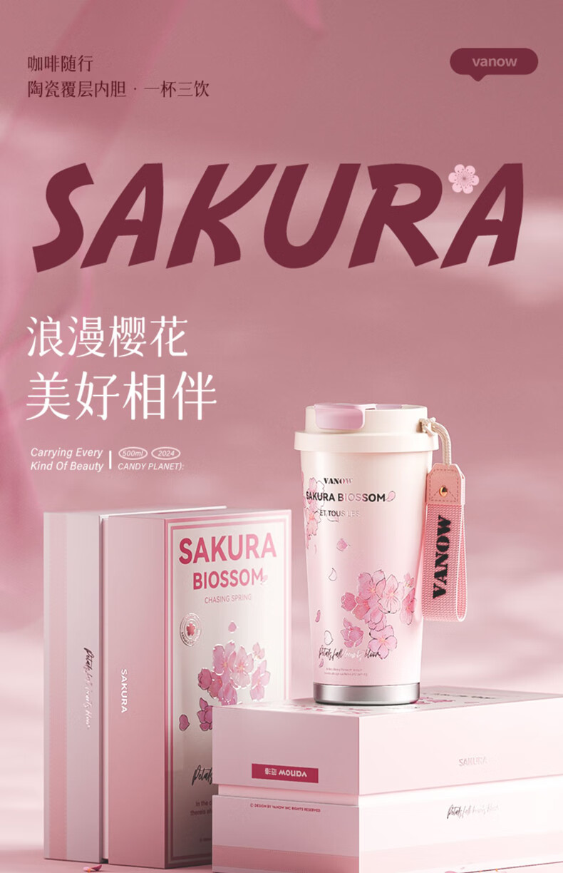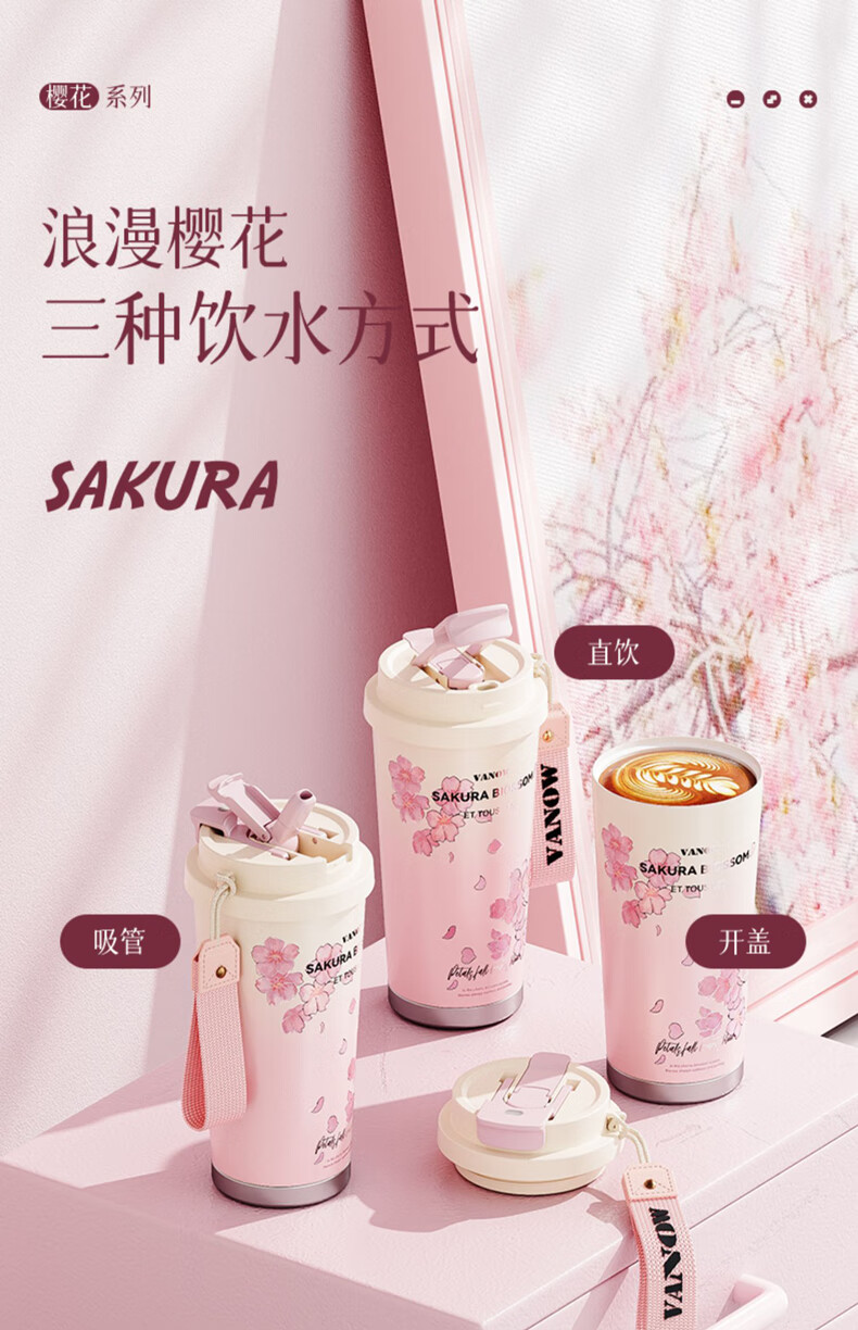 Vanow thermos cup Sakura girls coffee ceramic liner straw cup bestie birthday gift home museum water cup
