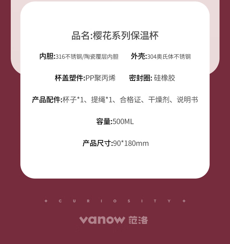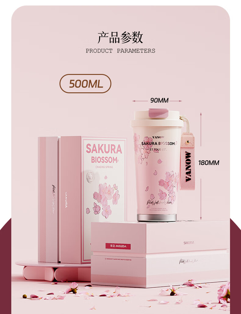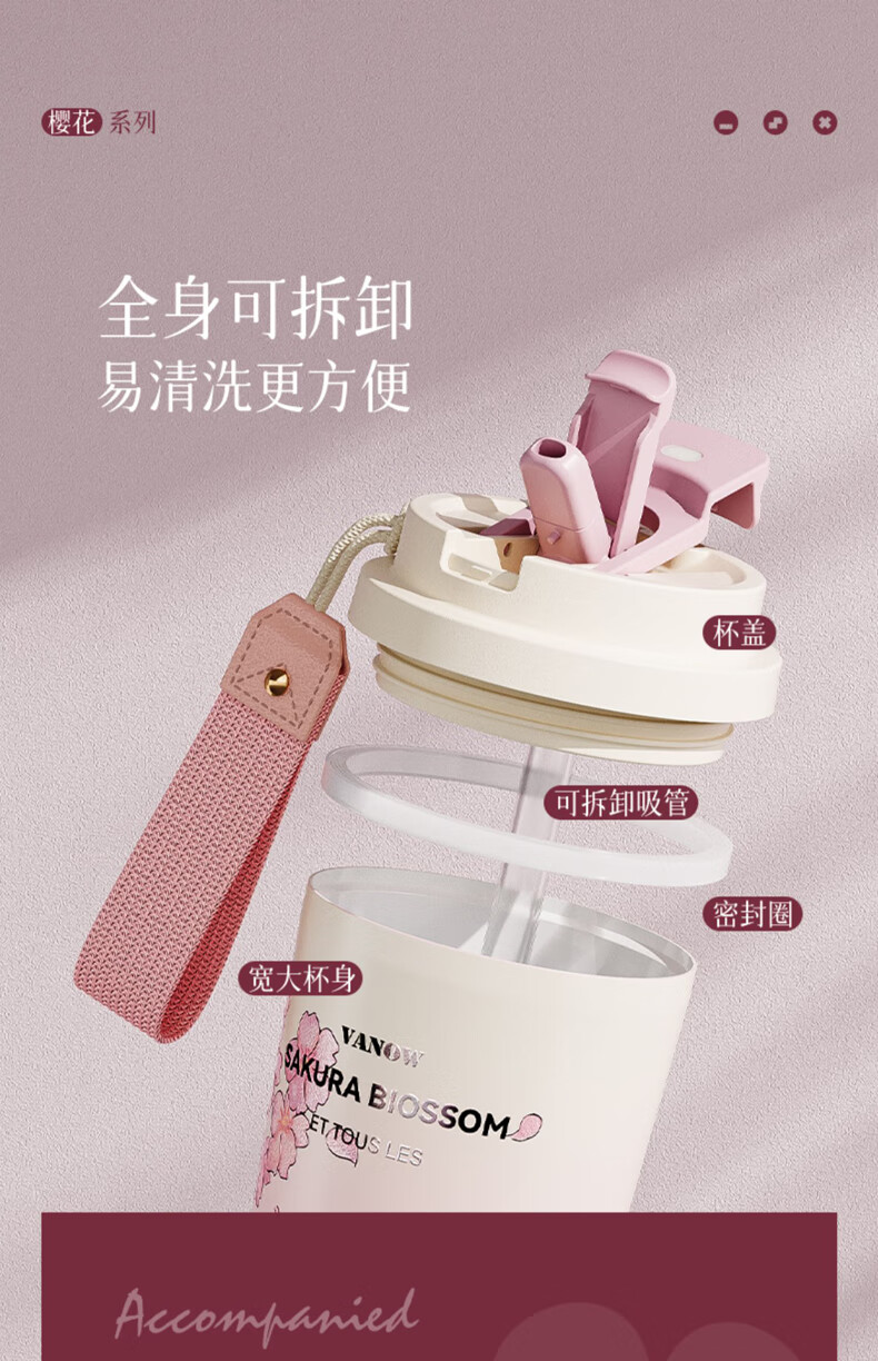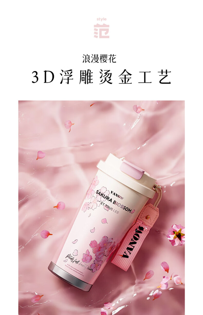 Vanow thermos cup Sakura girls coffee ceramic liner straw cup bestie birthday gift home museum water cup