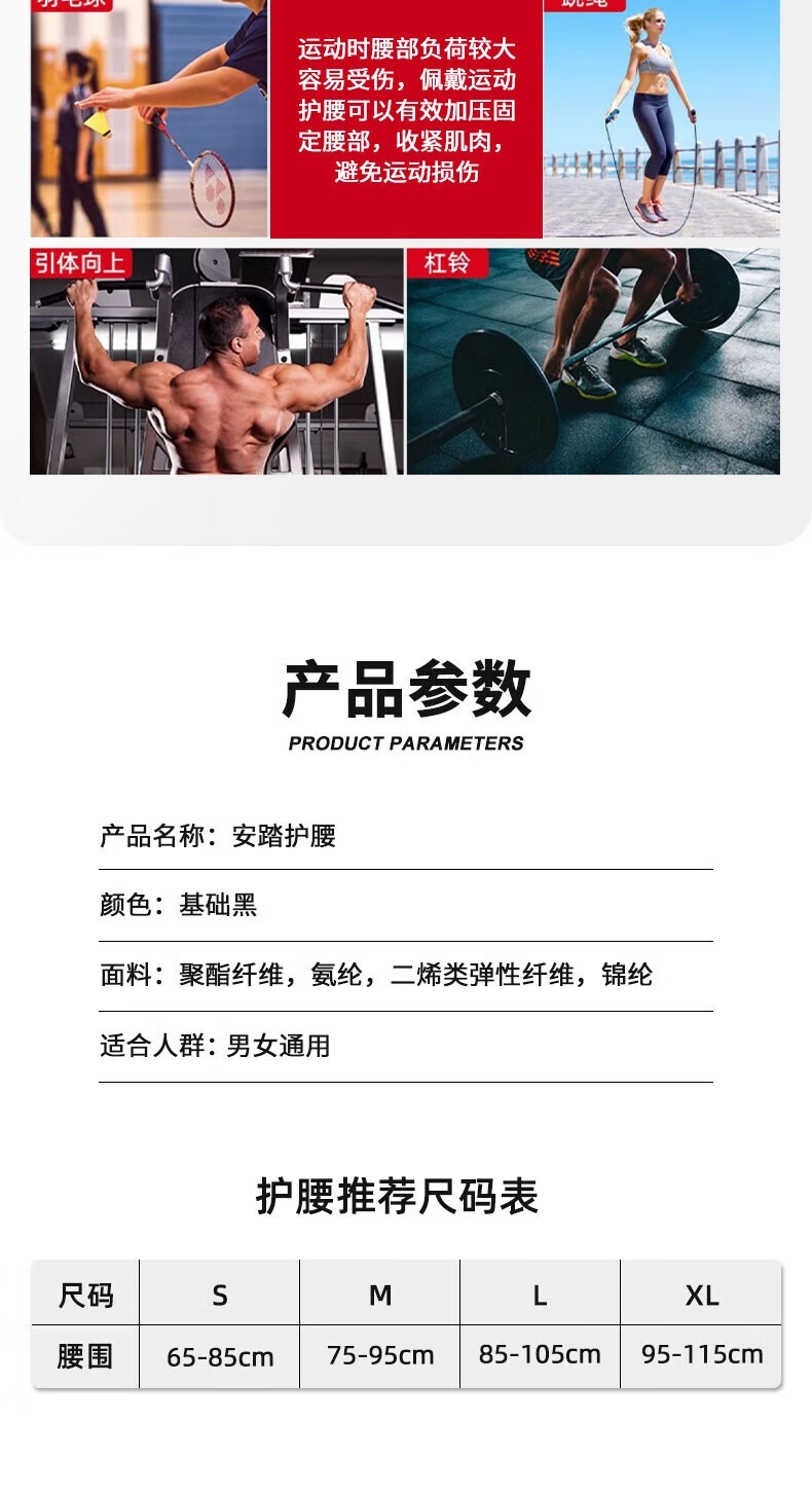 ANTA waist support sports belt with lumbar disc herniation for men and women with sedentary strain lumbar support summer fitness squat support L size