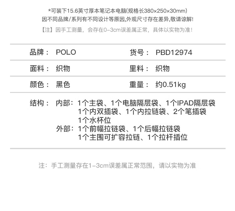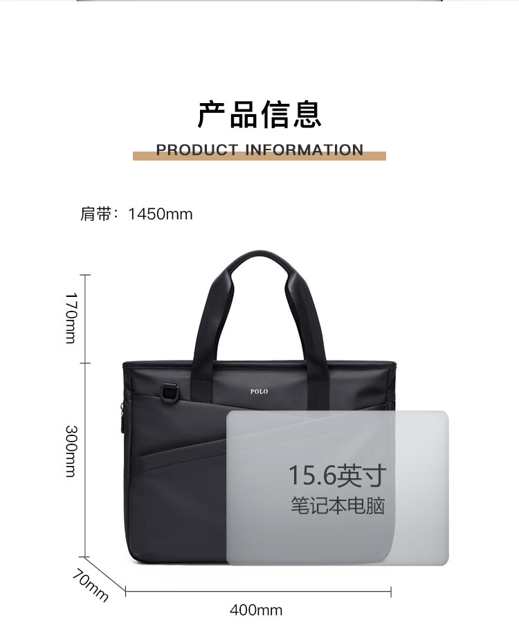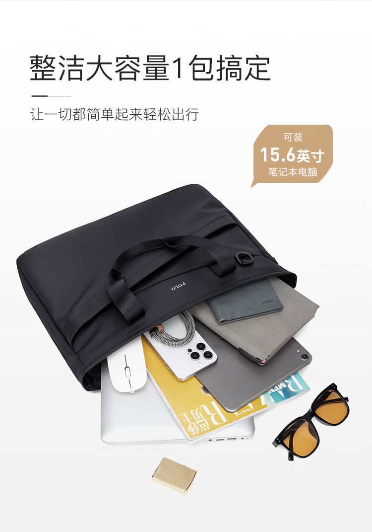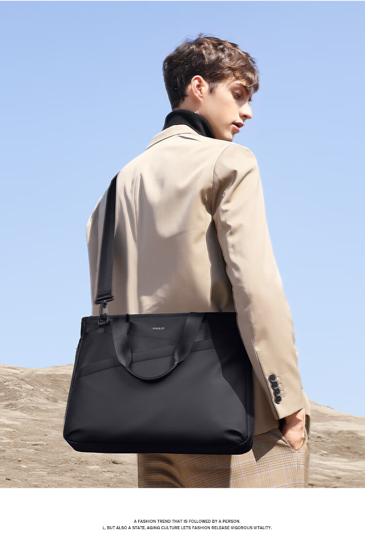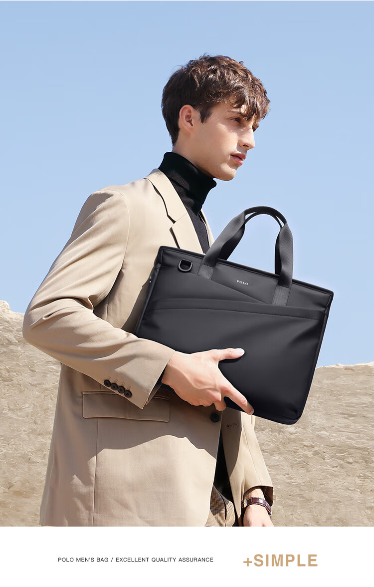 POLO business briefcase men's expandable handbag 14/15.6 inch computer bag shoulder bag gift for boyfriend