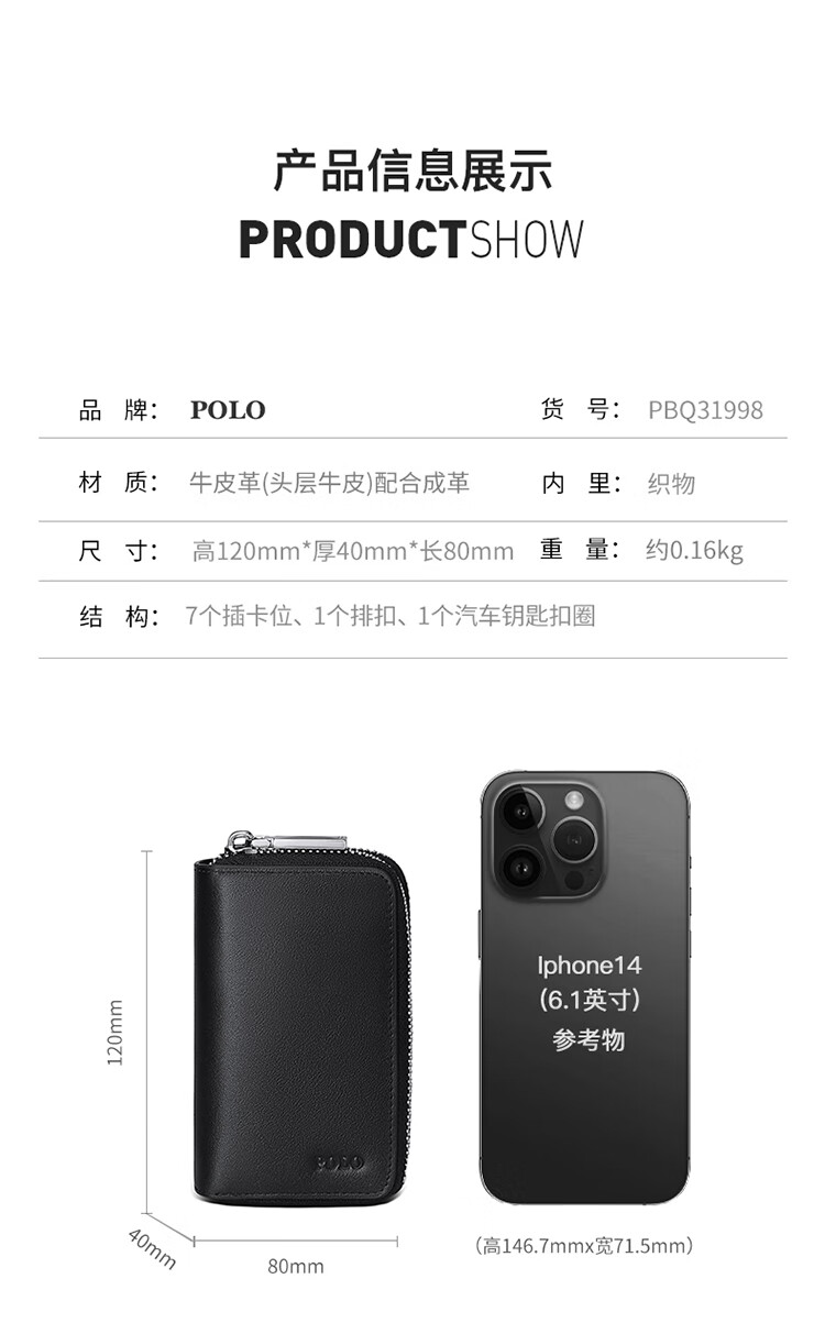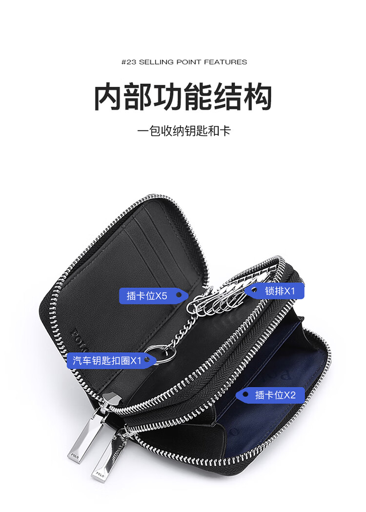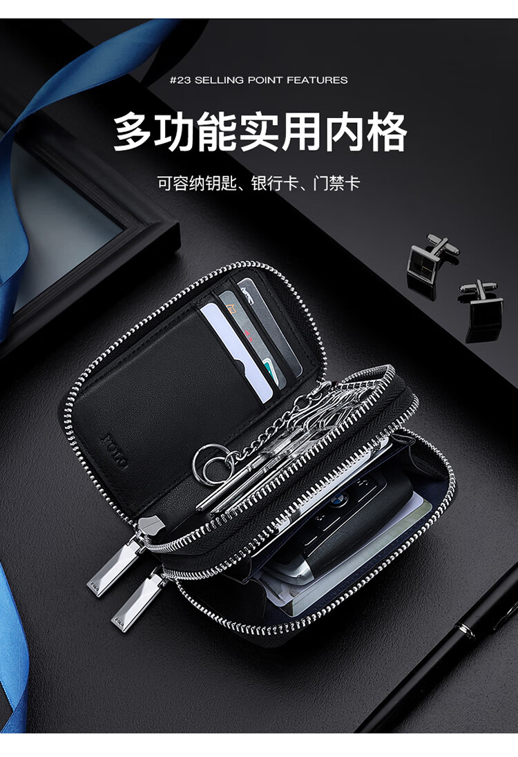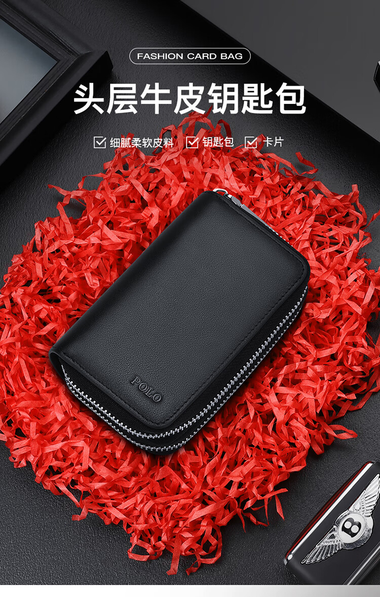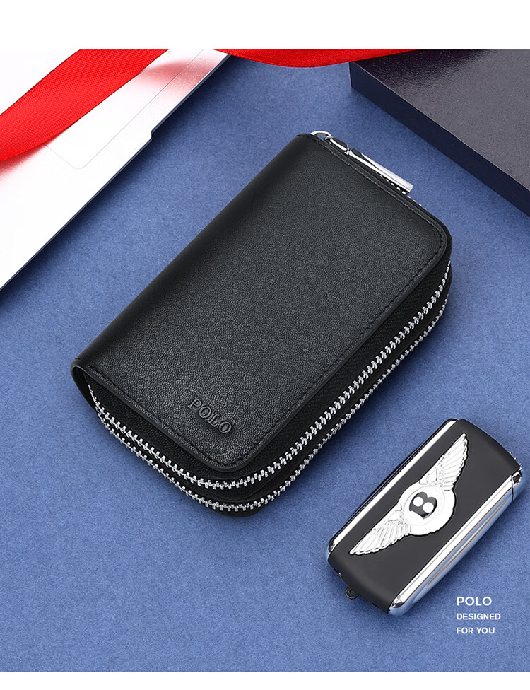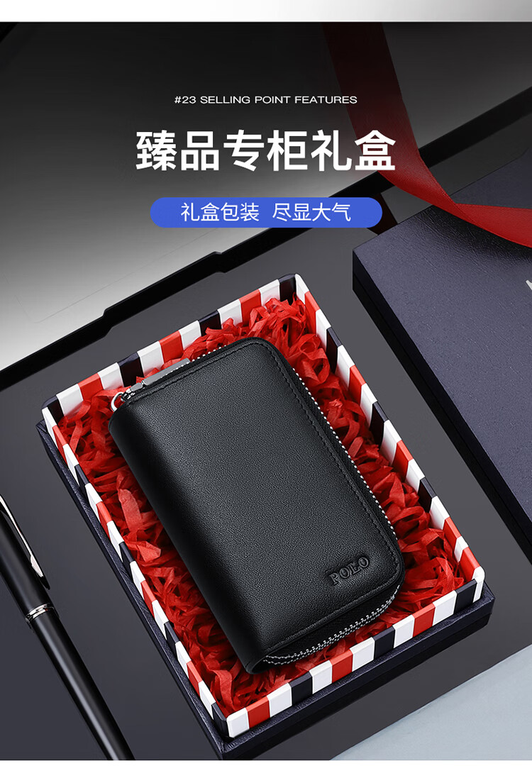POLO key bag men's first-layer kraft card bag men's multi-functional storage bag anti-scratch keychain birthday gift for boyfriend