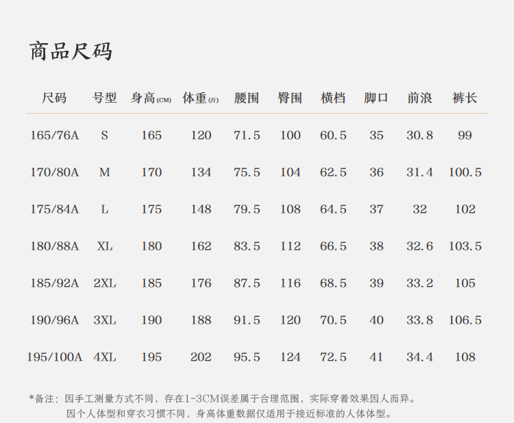 China (cm) 160-165/84-86 165-170 / 88-90 167-172 / 92-96 168-173 / 98-102 170-176 / 106-110
