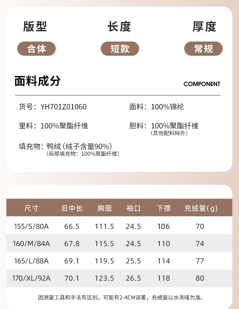 China (cm) 160-165/84-86 165-170 / 88-90 167-172 / 92-96 168-173 / 98-102 170-176 / 106-110