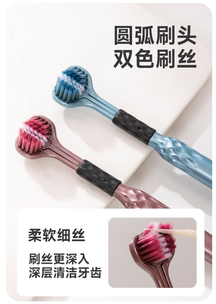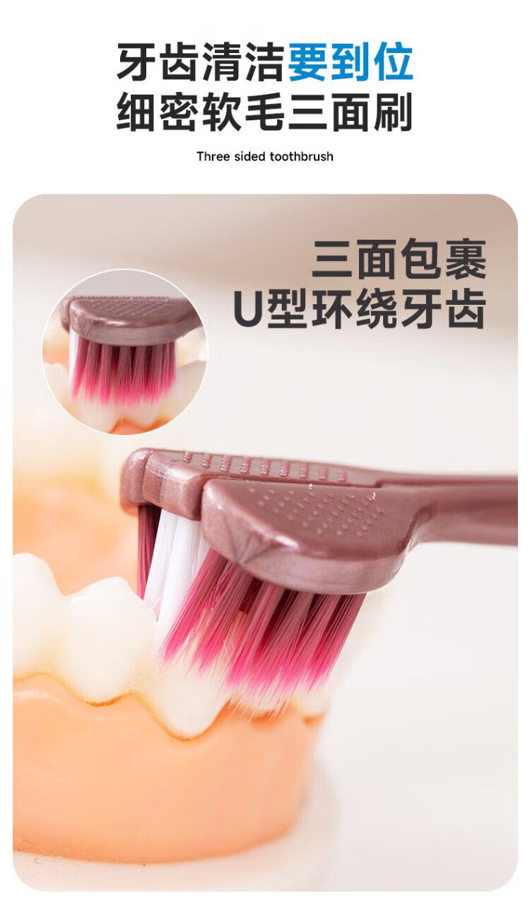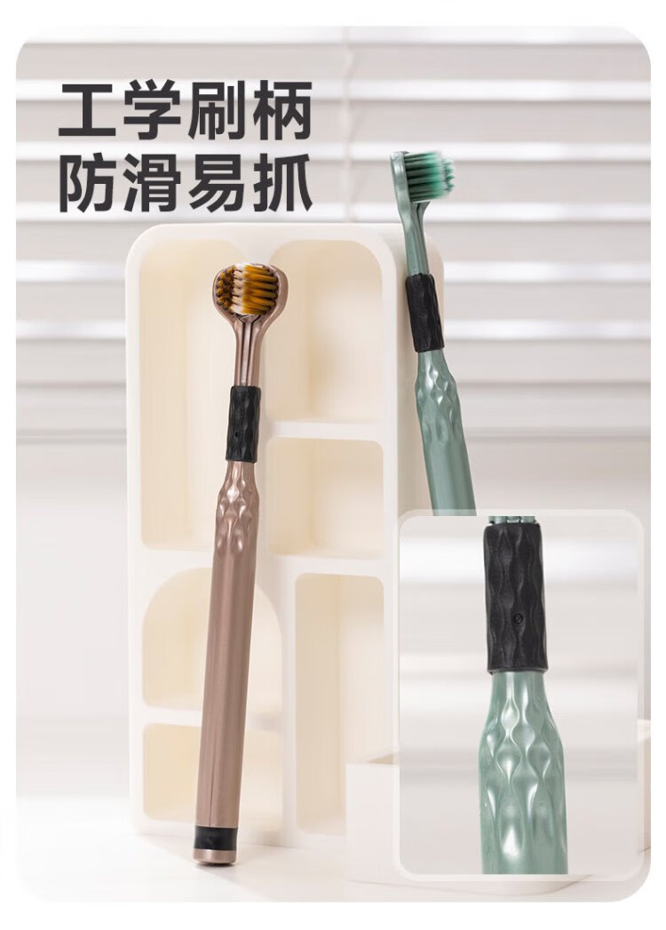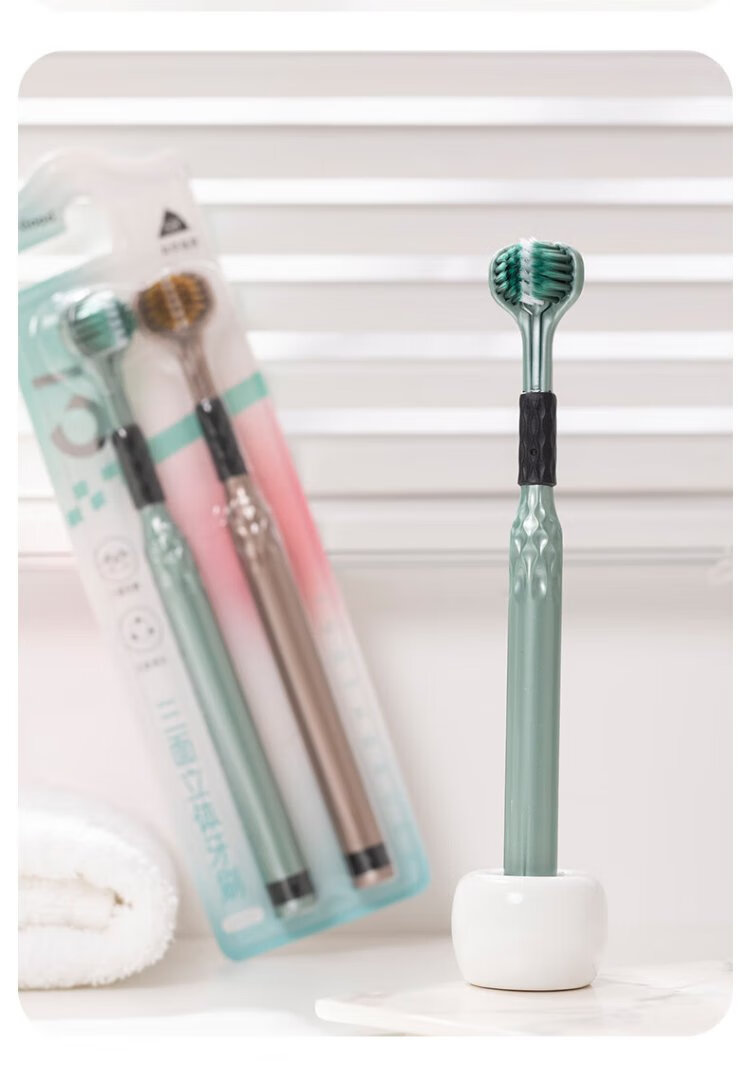 Jian Toothbrush soft-bristle three-sided toothbrush self-operated volcanic charcoal U-shaped 3D three-dimensional surrounding brush head 4 pack with random colors