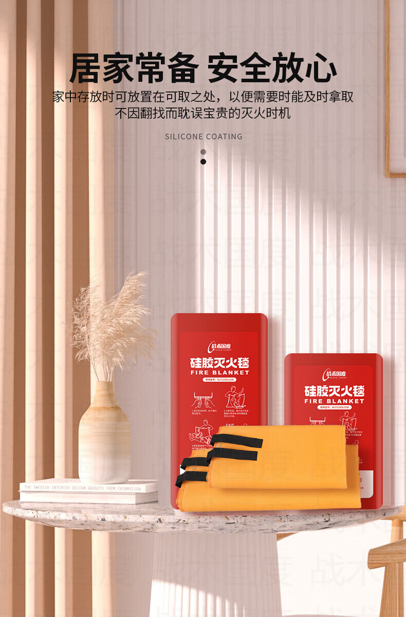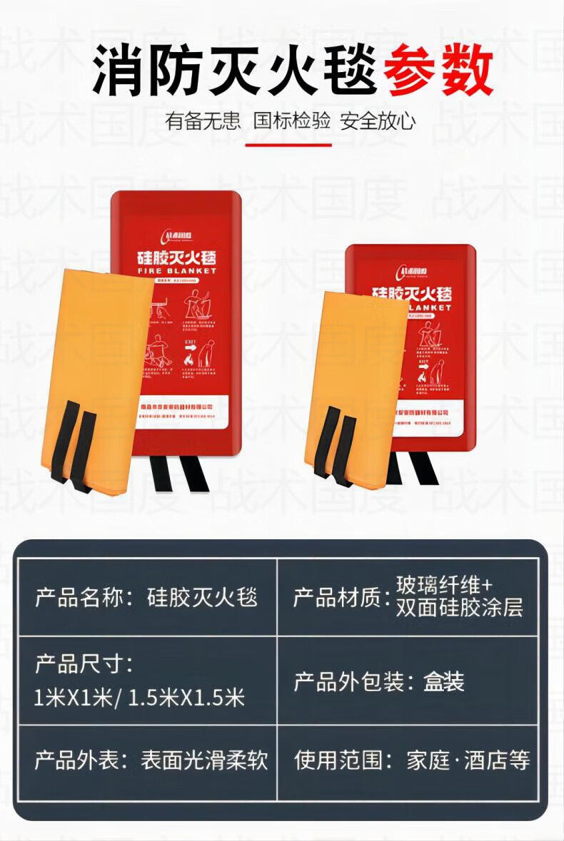 Tactical Nation Boxed Silicone Fire Blanket 1*1 Meter Home Kitchen Commercial Fire Escape Flame Retardant Fire Protection Certification Double-Sided Silicone Coated National Standard Fire Blanket