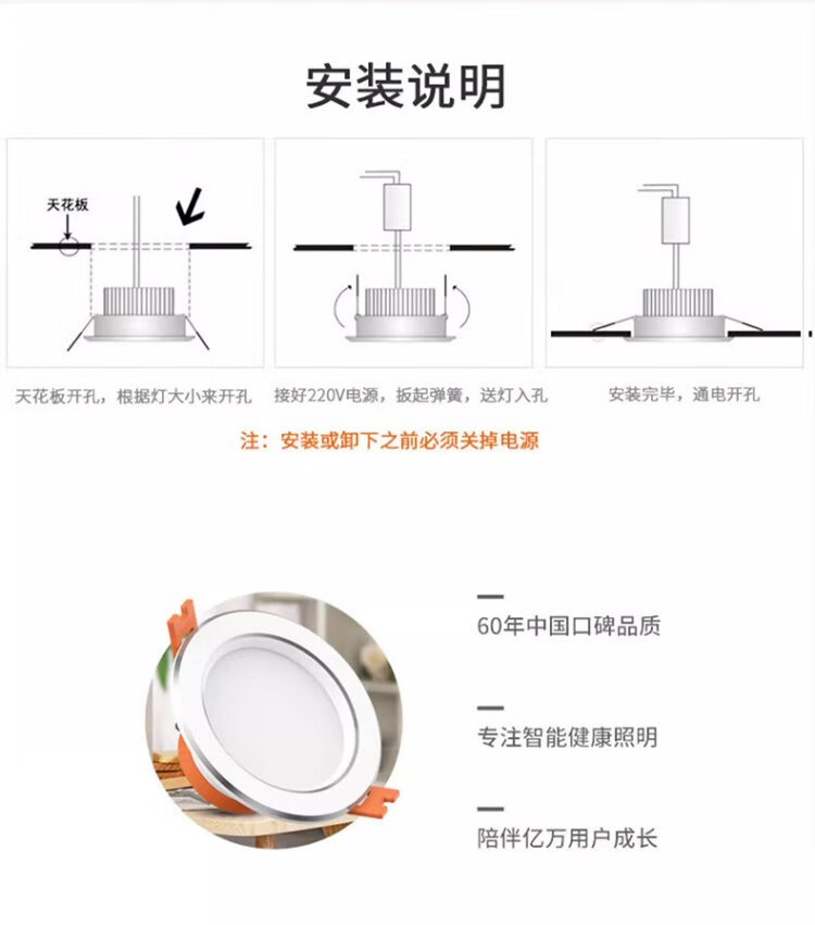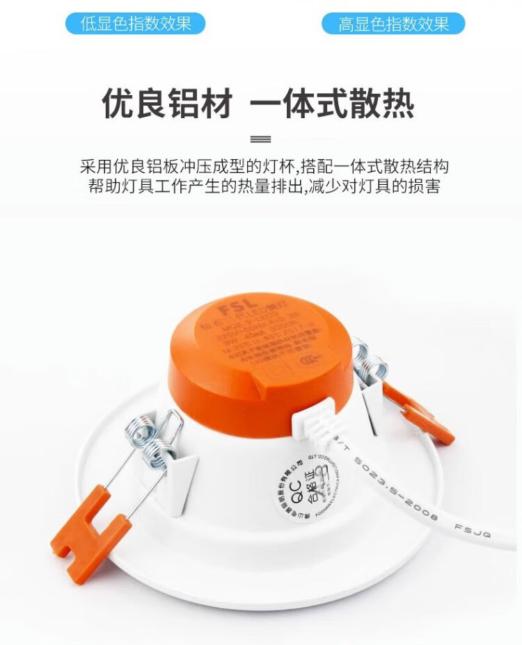 Foshan Lighting (FSL) downlight led ceiling spotlight aluminum embedded aisle ceiling hole light hole light simple light 7W warm white light 3.5 inch opening 105-110mm