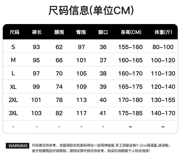 Outseam (cm) 99 cm 101.5 cm 104 cm 106.5 cm 109 cm