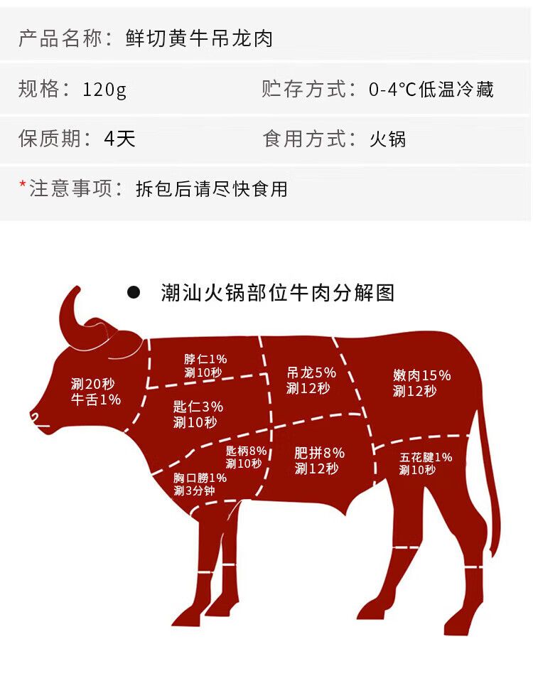 Beef Chi Fresh Cut Beef Diaolong Slices 120g/box