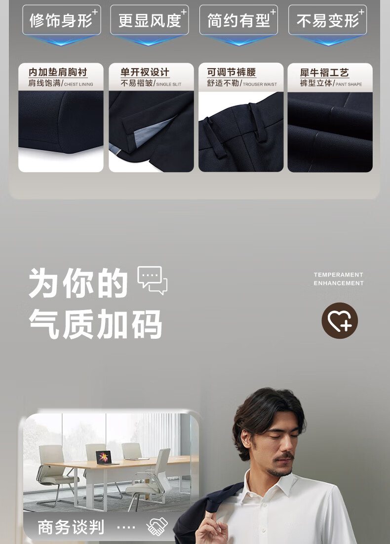Qipai wool-containing suit men's suit spring and autumn groom's wedding formal suit business professional suit