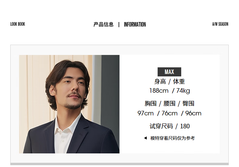 China (cm) 165 / 88-90 170 / 96-98 175 / 108-110 180 / 118-122 185 / 126-130