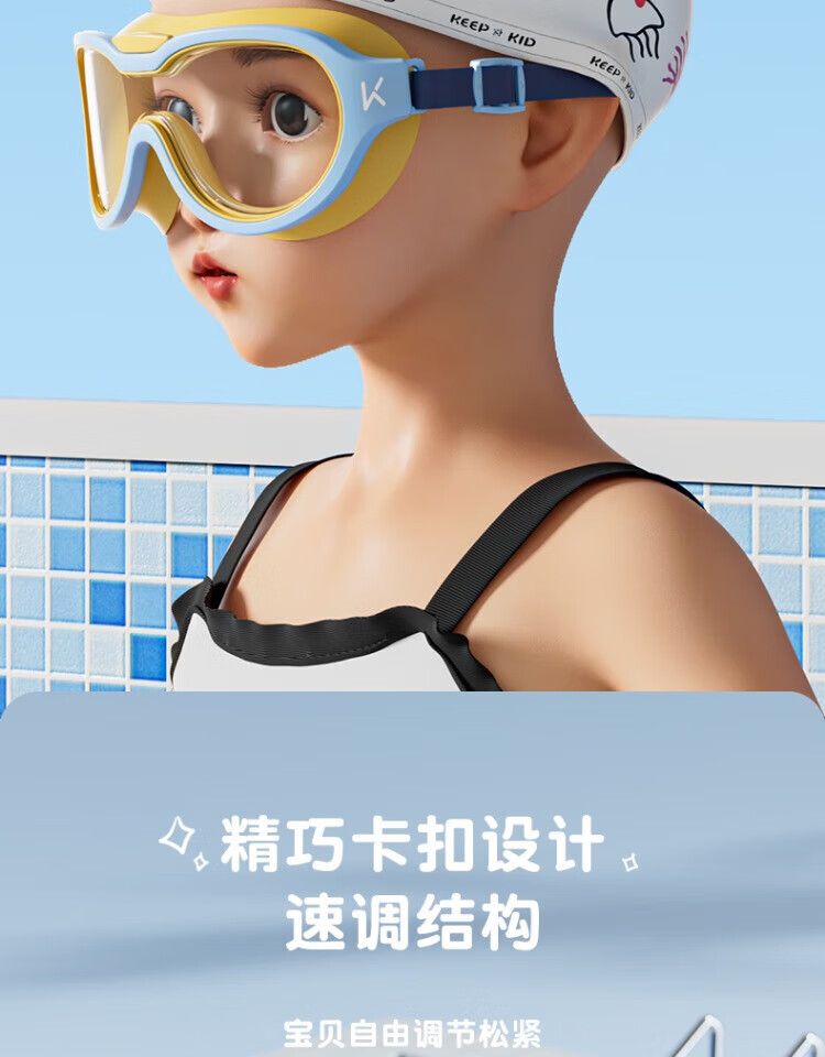 Keep children's swimming goggles waterproof anti-fog HD swimming goggles girls boys large frame diving goggles swimming cap set