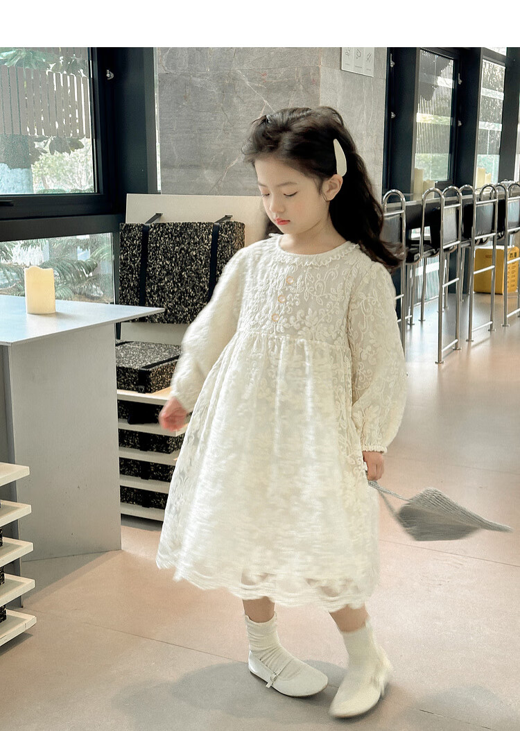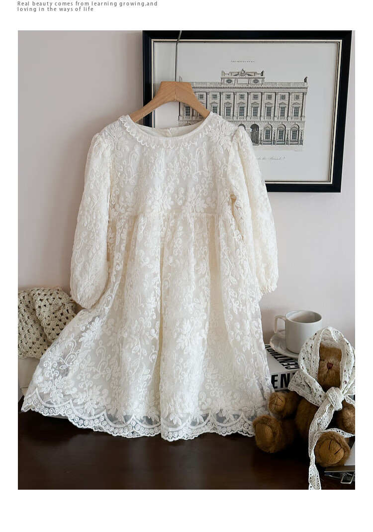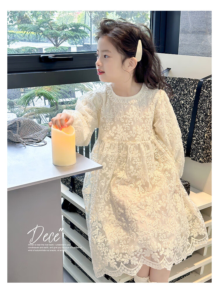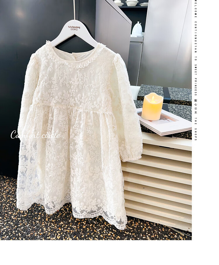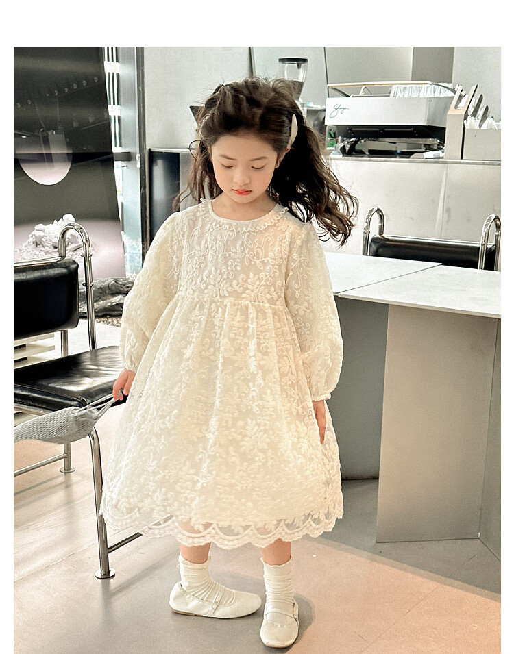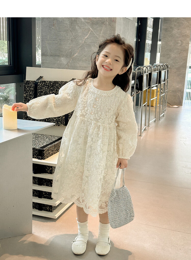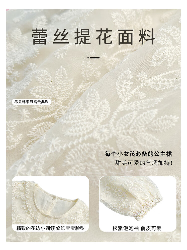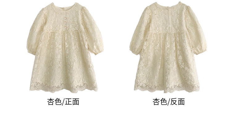 Tutu Little Elephant Girls Dress 24 Spring and Autumn Western Style Children's Fairy Dress Lace Jacquard Puff Sleeve Princess Dress Apricot 120