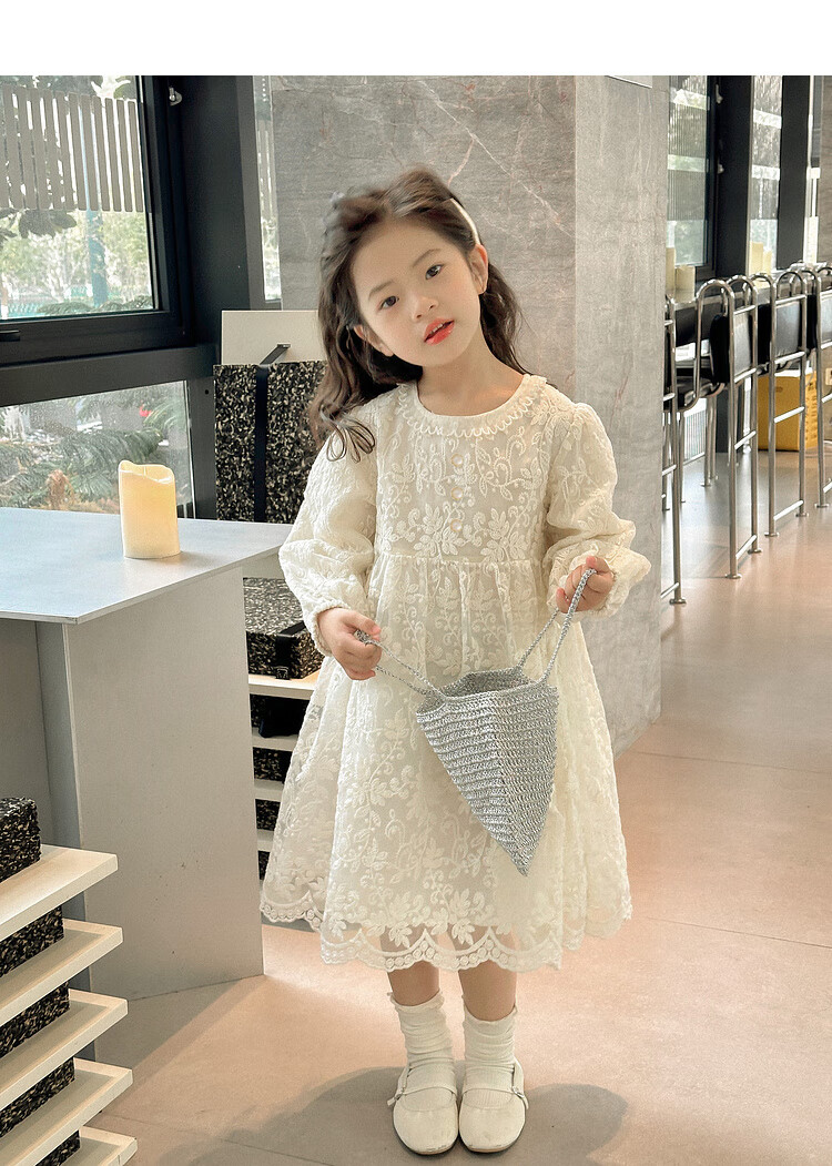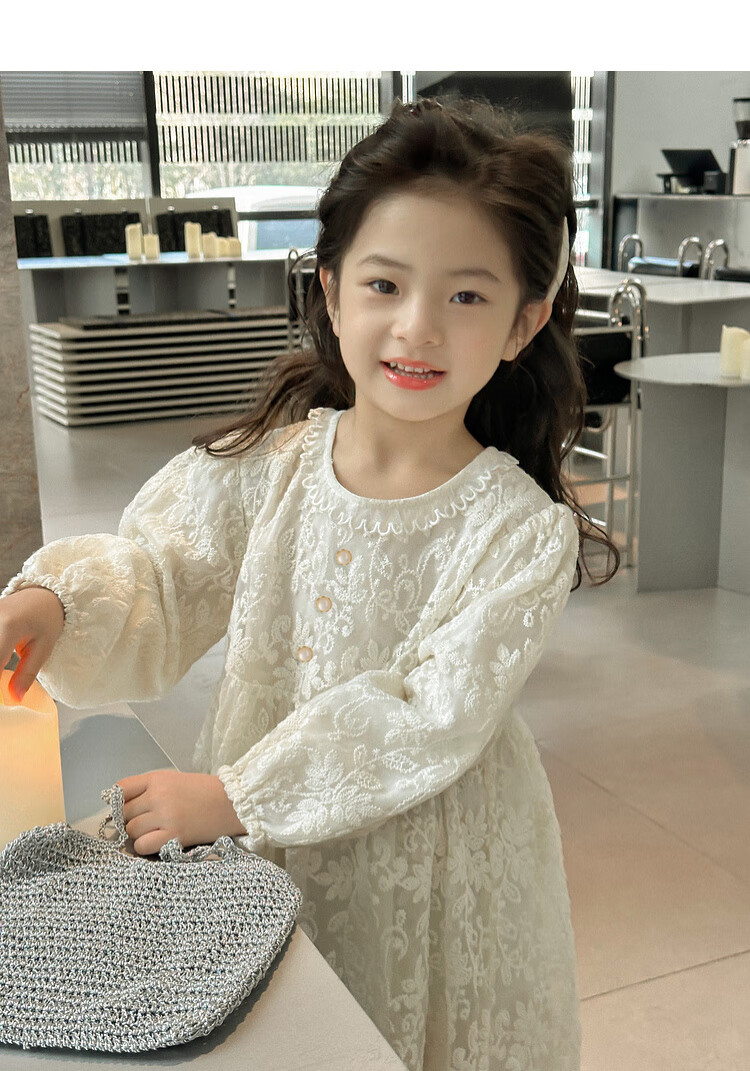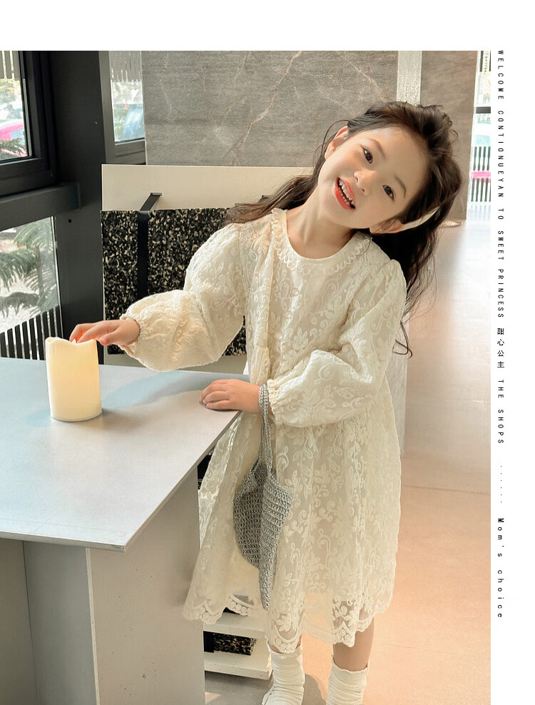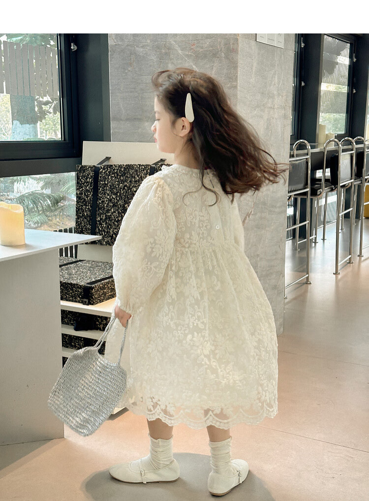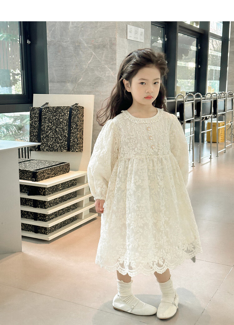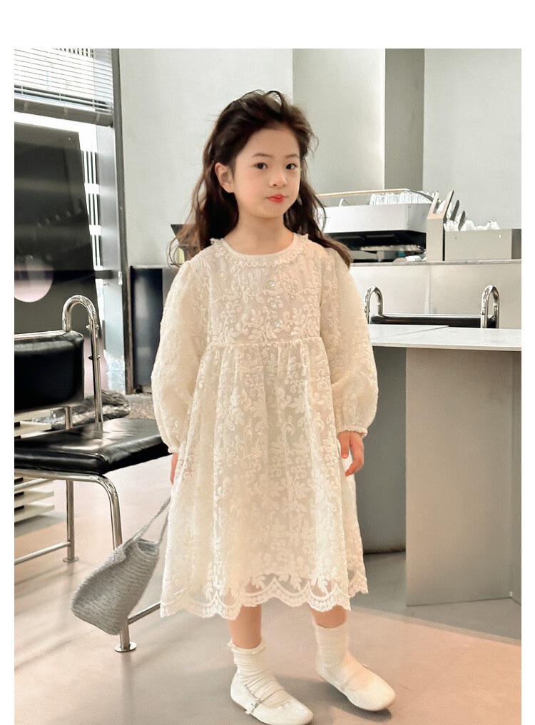 Tutu Little Elephant Girls Dress 24 Spring and Autumn Western Style Children's Fairy Dress Lace Jacquard Puff Sleeve Princess Dress Apricot 120