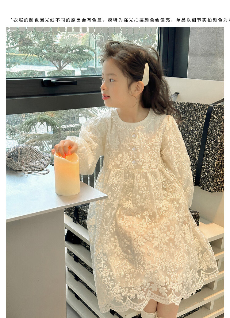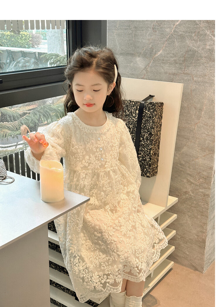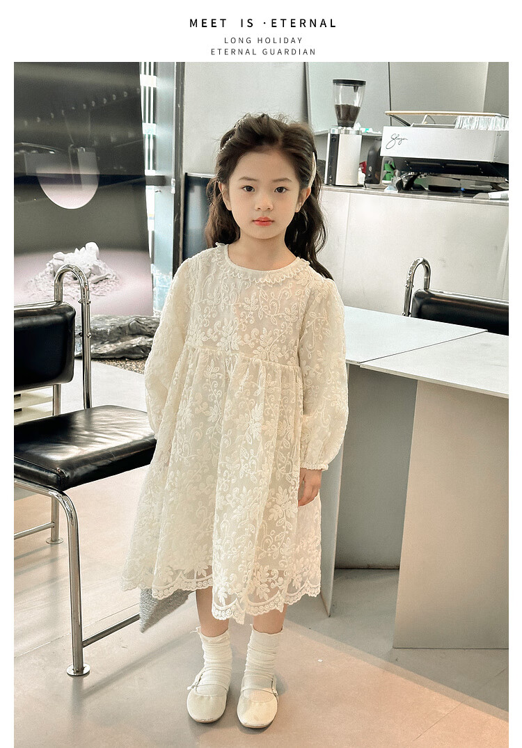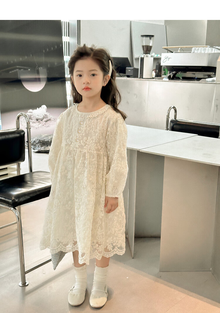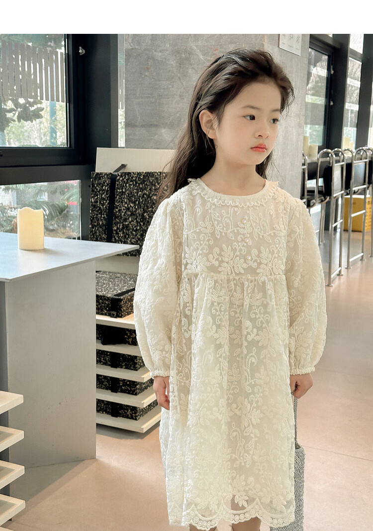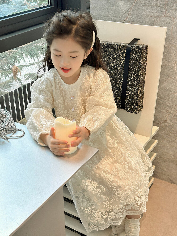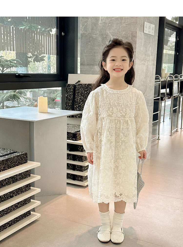 Tutu Little Elephant Girls Dress 24 Spring and Autumn Western Style Children's Fairy Dress Lace Jacquard Puff Sleeve Princess Dress Apricot 120