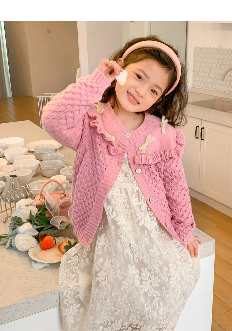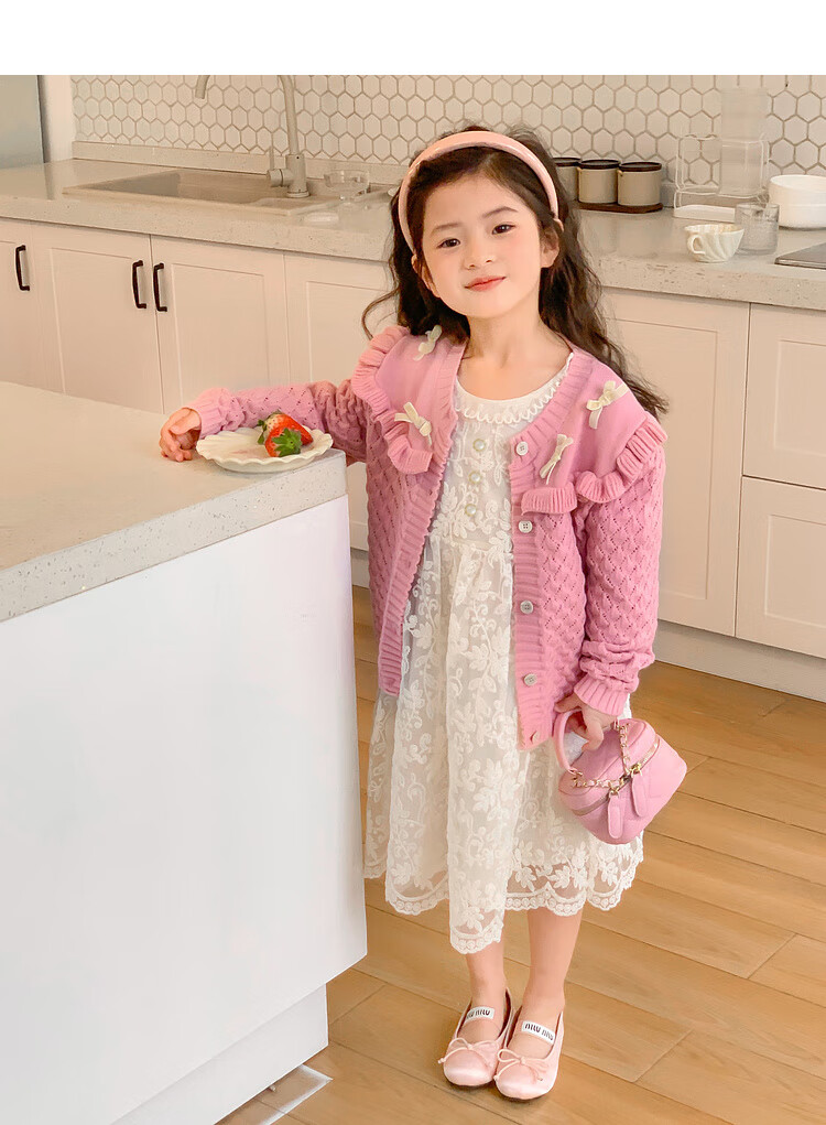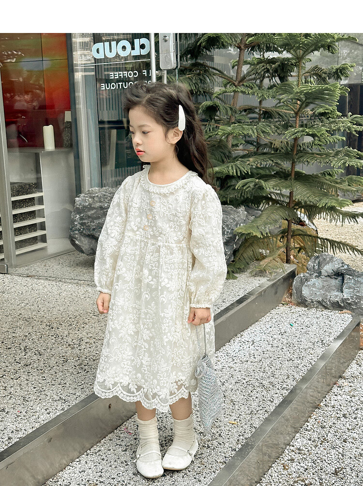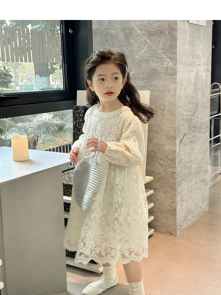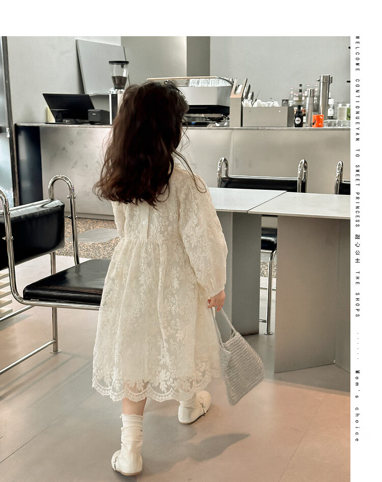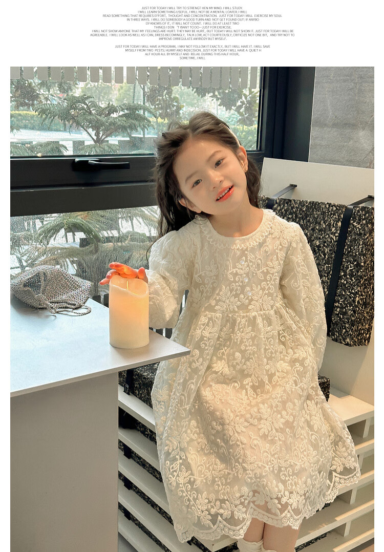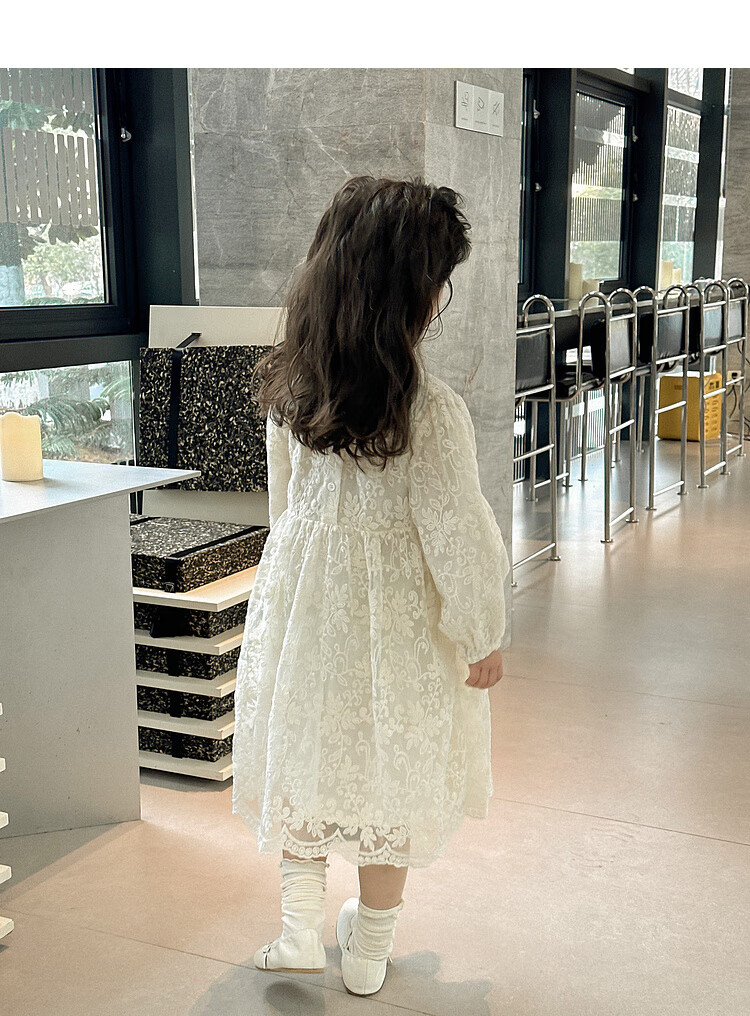 Tutu Little Elephant Girls Dress 24 Spring and Autumn Western Style Children's Fairy Dress Lace Jacquard Puff Sleeve Princess Dress Apricot 120