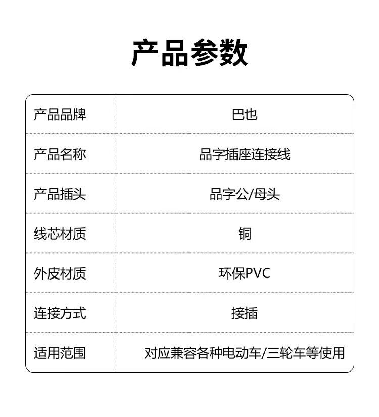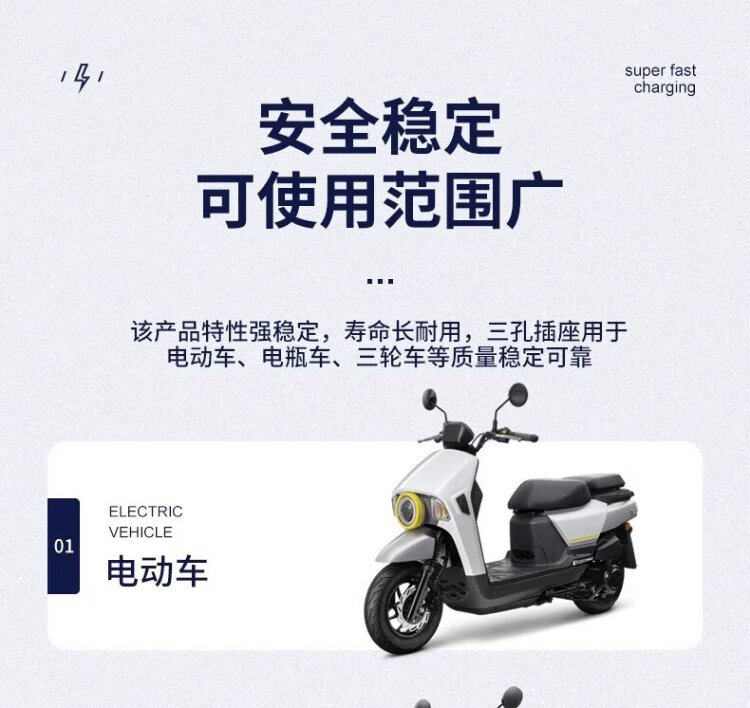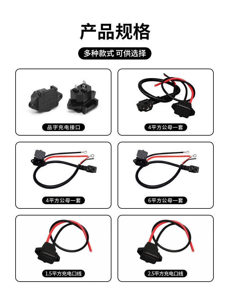 Baye Electric Tricycle Pinzi Socket Charging Socket Battery Cable 6 Square Meters (Charging Socket 20cm + Plug Cable 45cm) 1 Set BY-CK20P45X