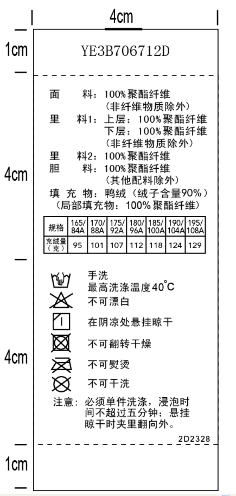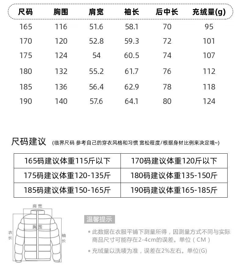 China (cm) 165 / 88-90 170 / 96-98 175 / 108-110 180 / 118-122 185 / 126-130