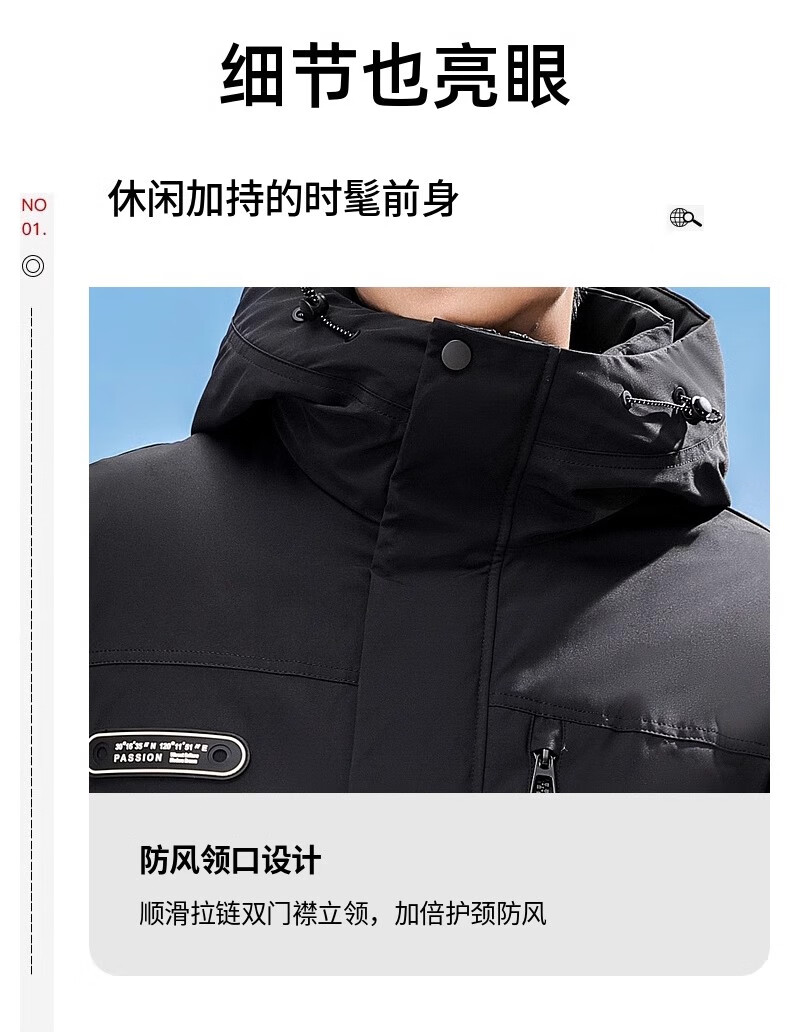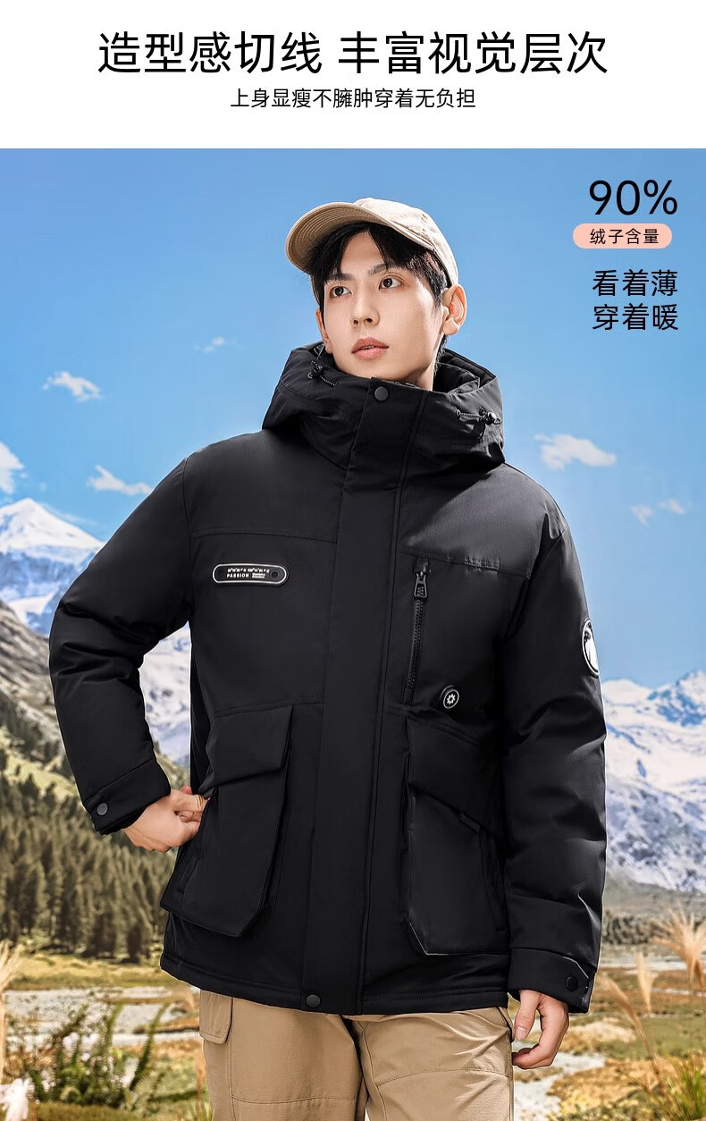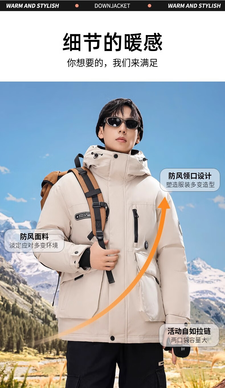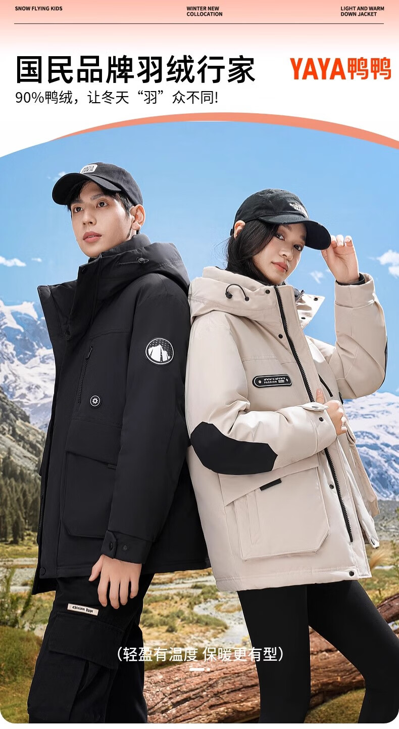 Duck duck Wang Yibo same style down jacket for men and women 2025 new winter thickened hooded work jacket trendy top
