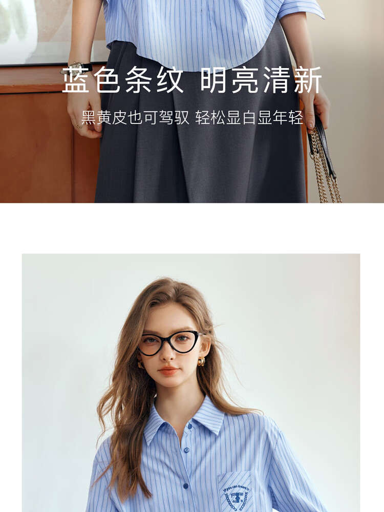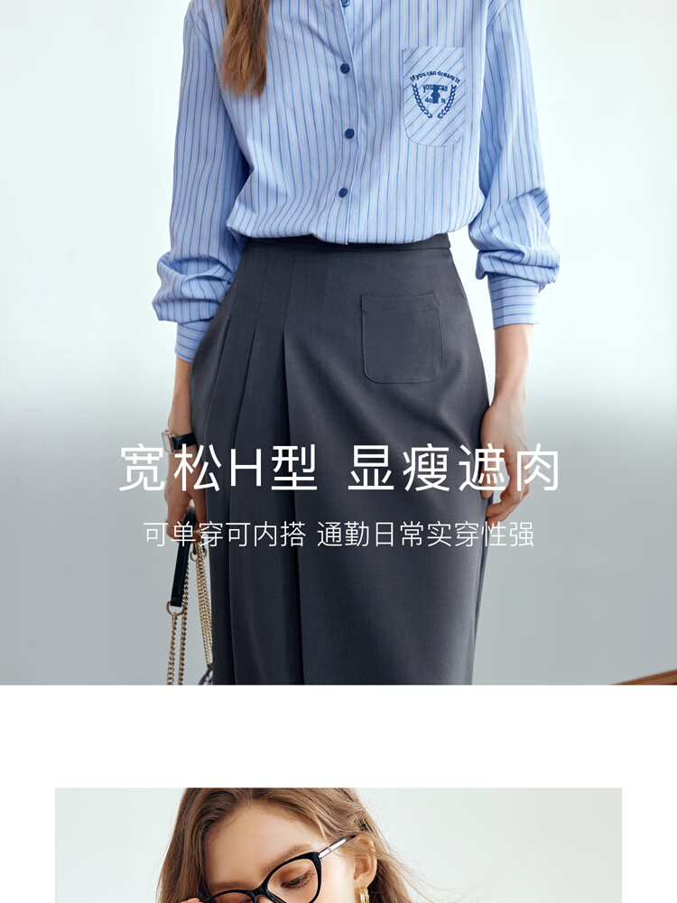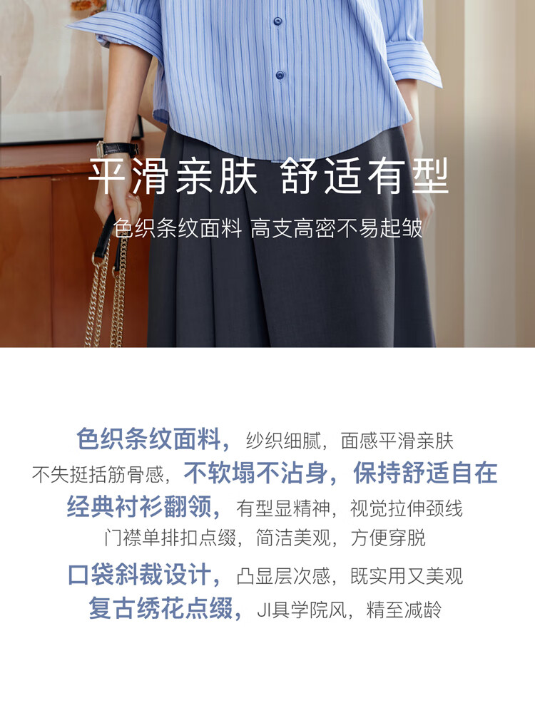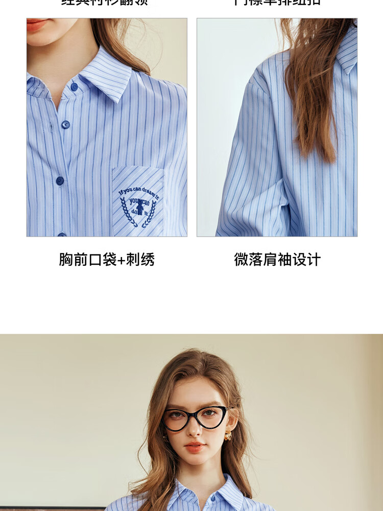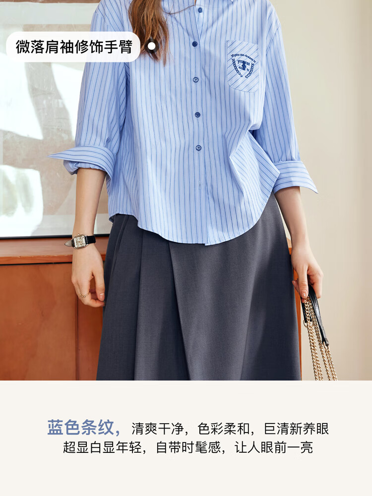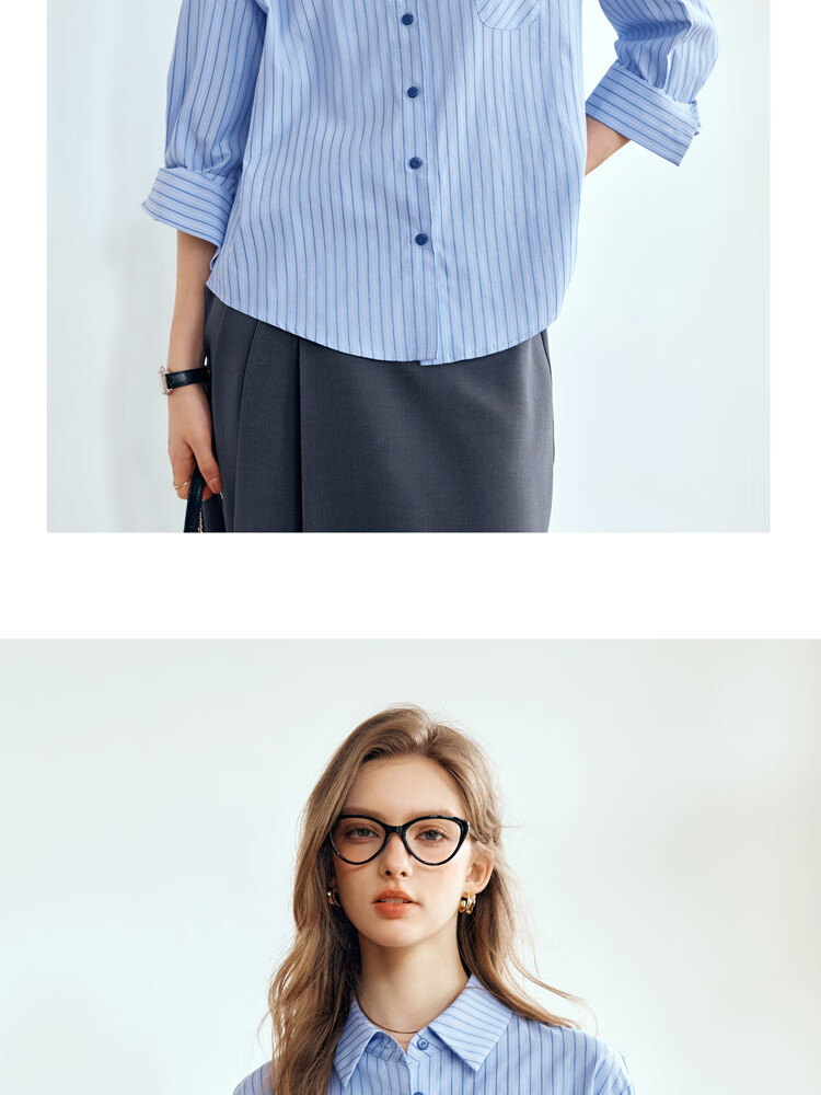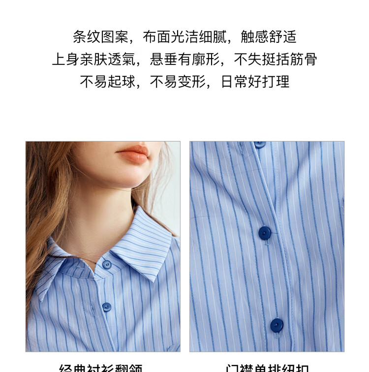 Olrain striped long-sleeved shirt women's autumn British college style commuting shirt blue striped L