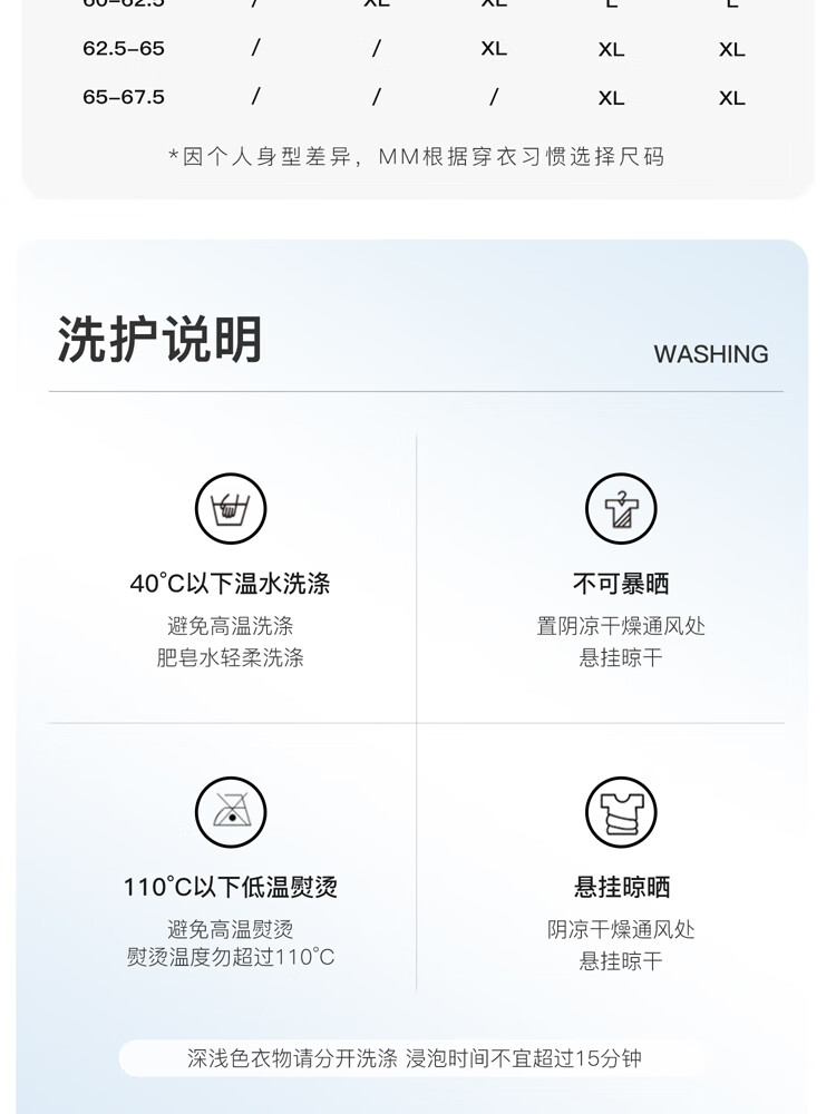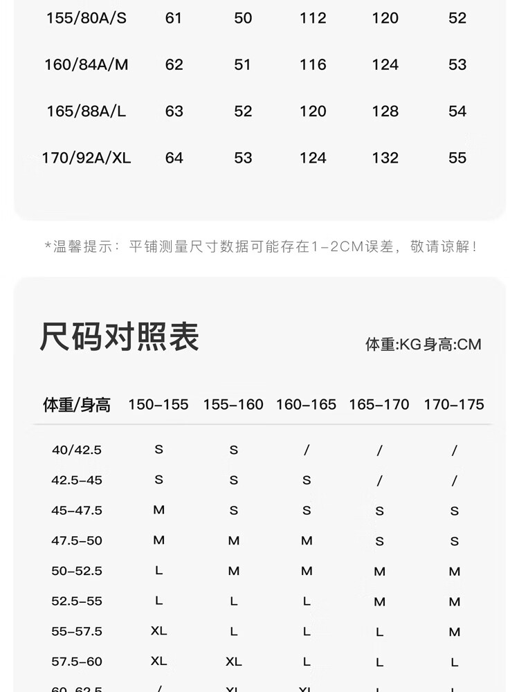 China (cm) 160-165/84-86 165-170 / 88-90 167-172 / 92-96 168-173 / 98-102 170-176 / 106-110