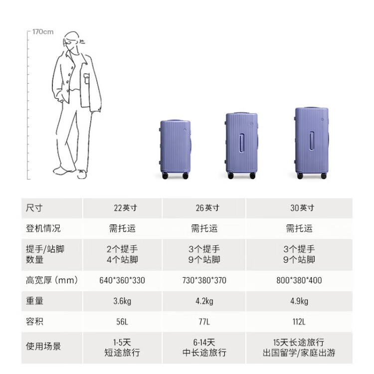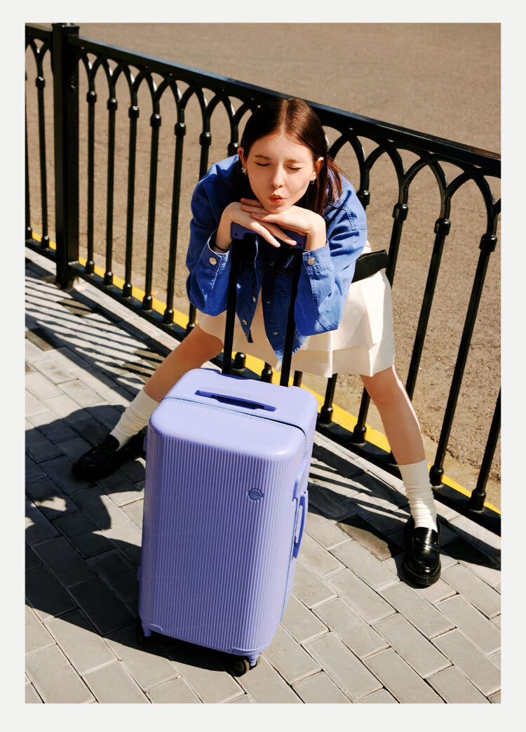 ITO suitcase TRUNK trolley case large capacity high-looking women's suitcase checked box digital purple 26 inches