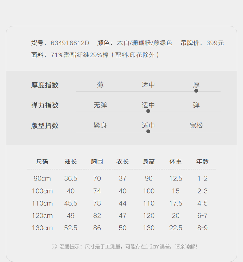 Size (cm) 42 44 46 48 50