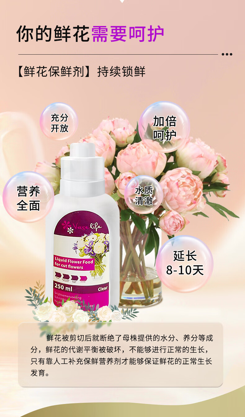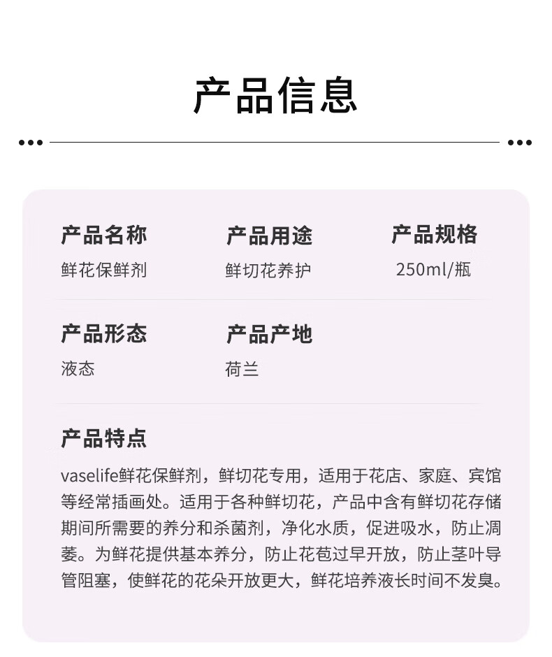 Jiuqiangu Vaselife flower preservative fresh cut flower nutrient solution universal Dutch imported preservative 250ml2690