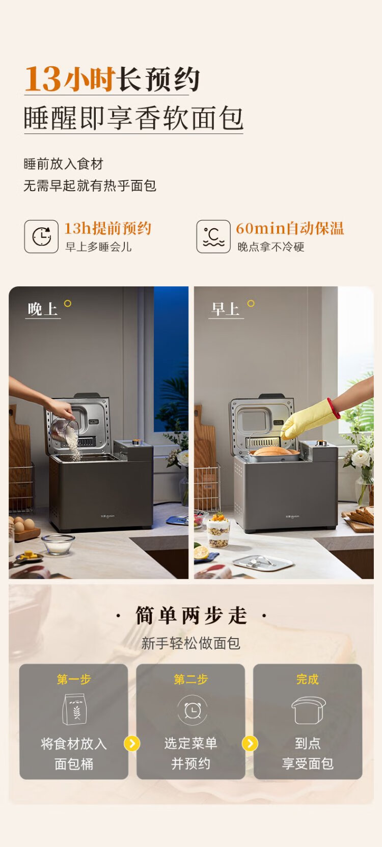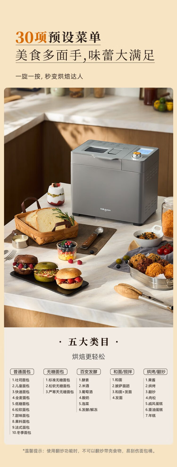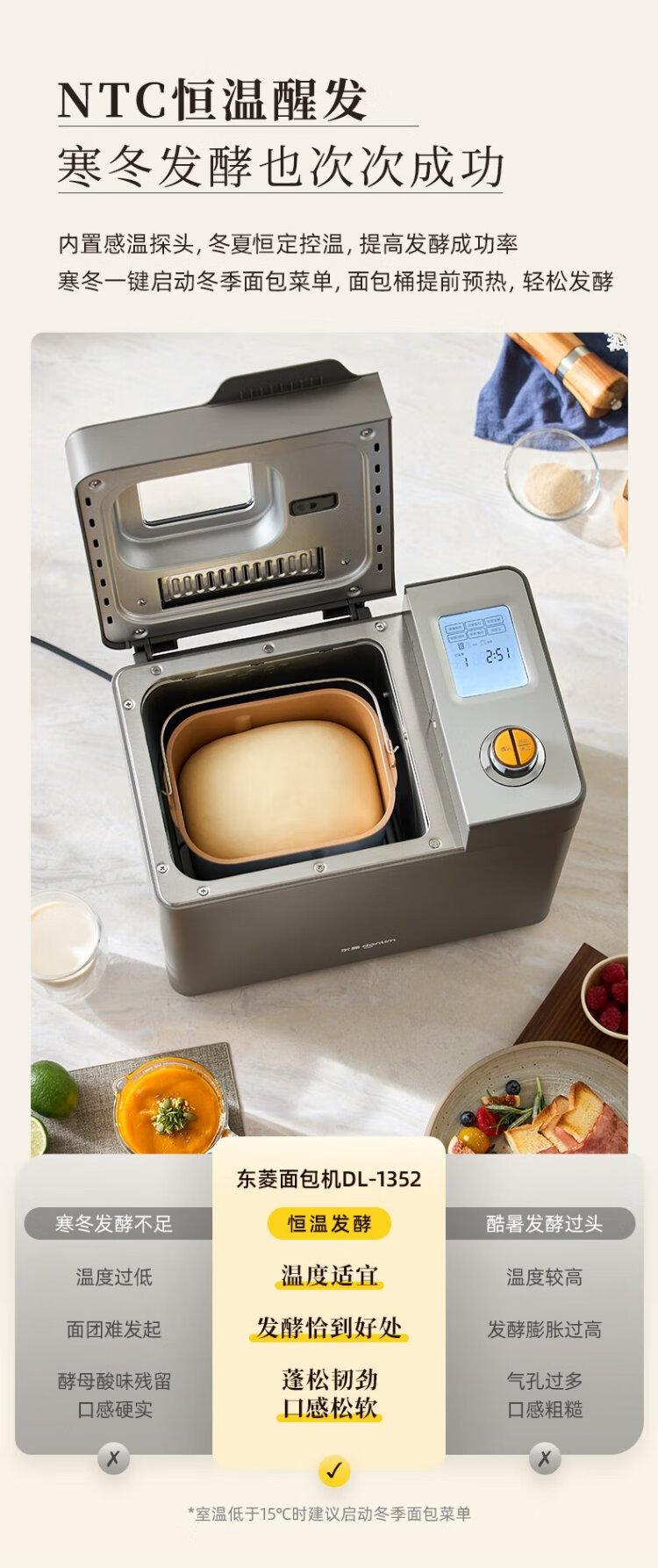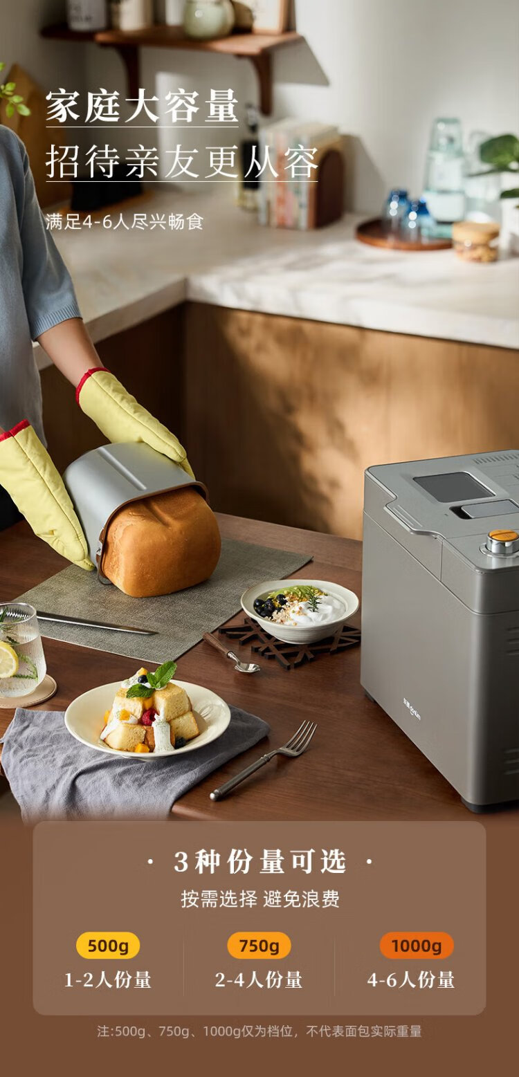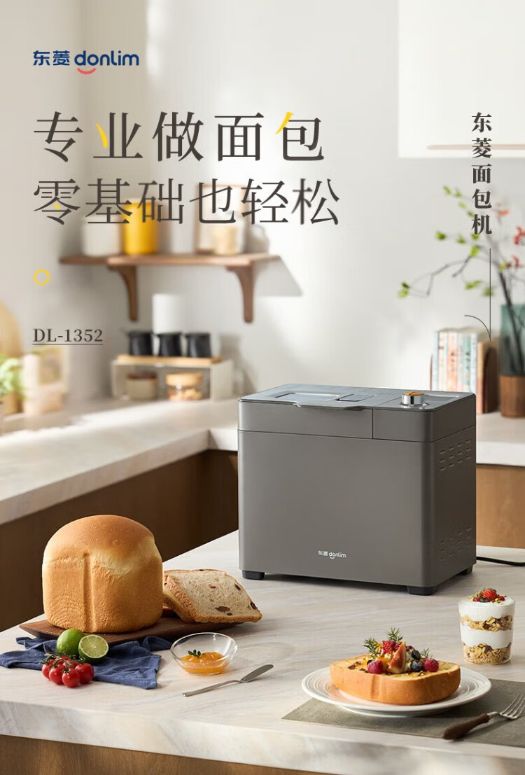 Donlim National Subsidy New Household Fully Automatic Sugar-free Bread Machine Large Capacity Intelligent Double Spreader Reservable Multifunctional Dough Mixer DL-1352 Gray