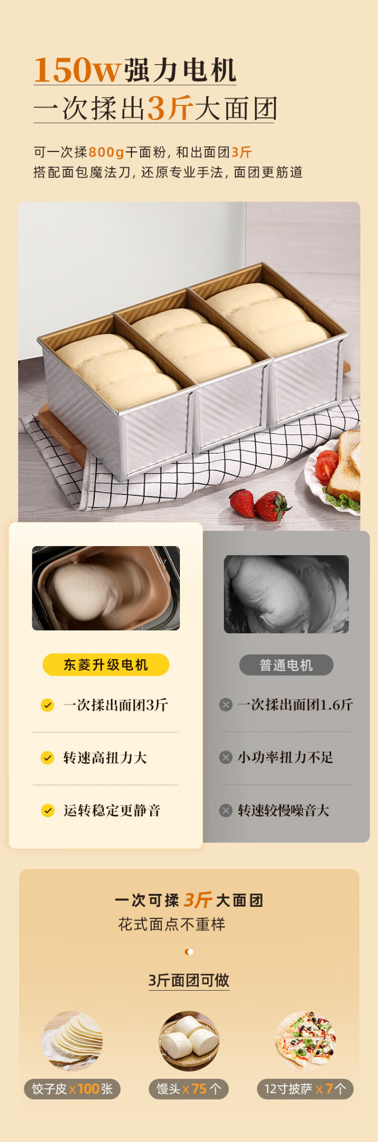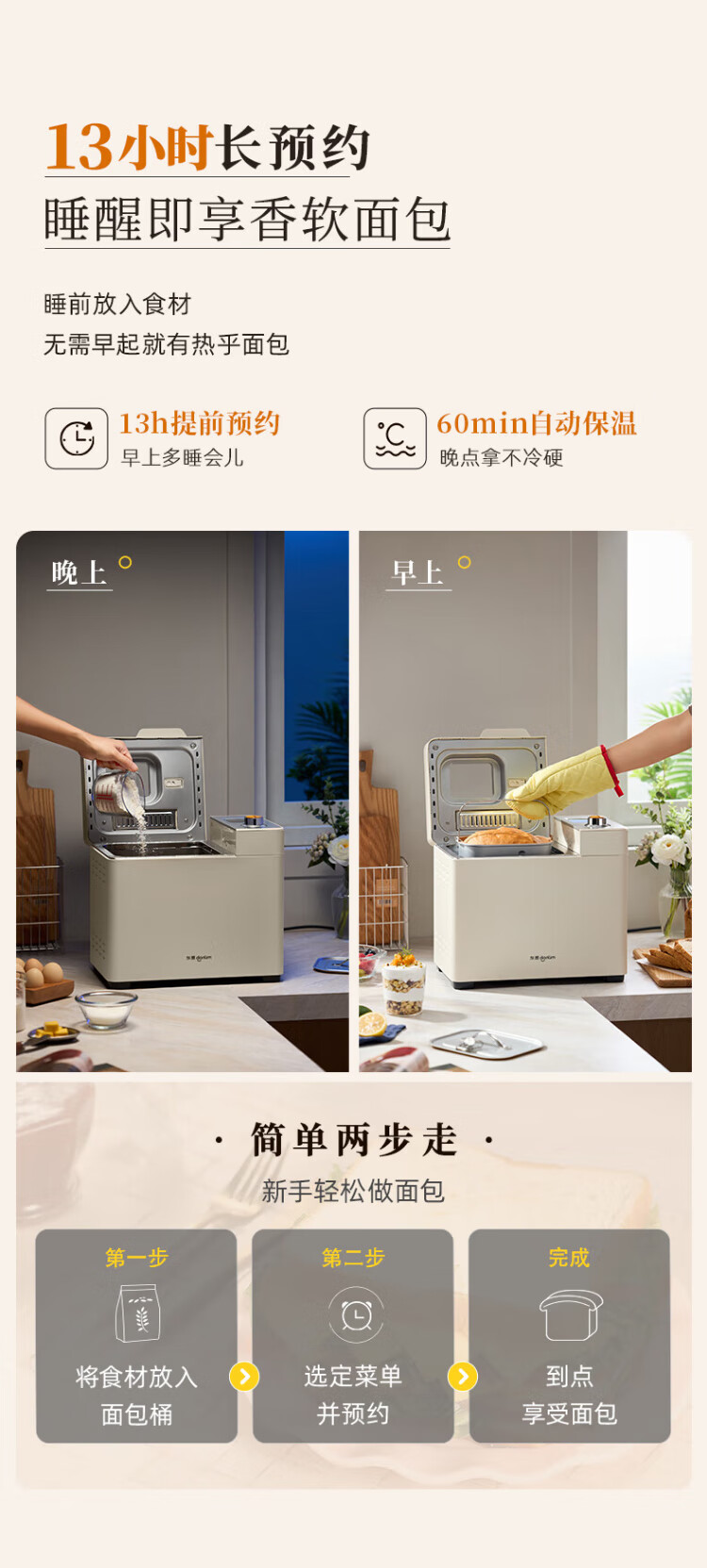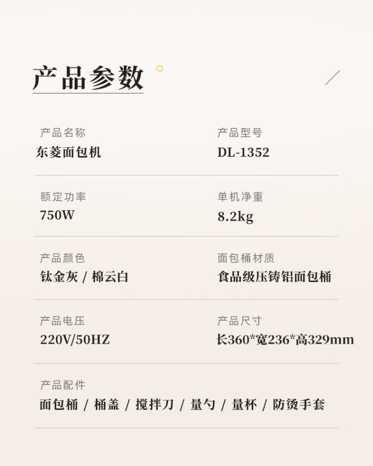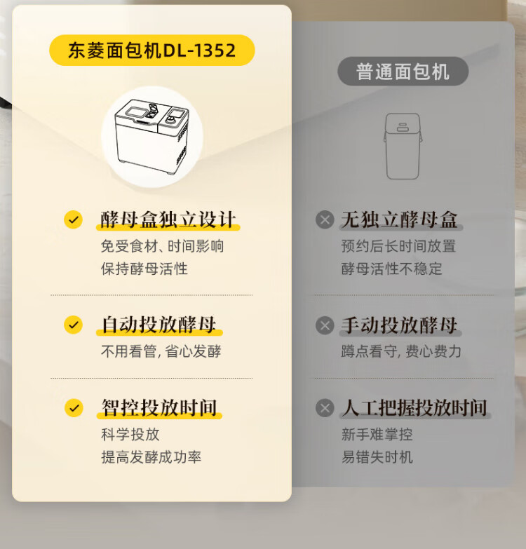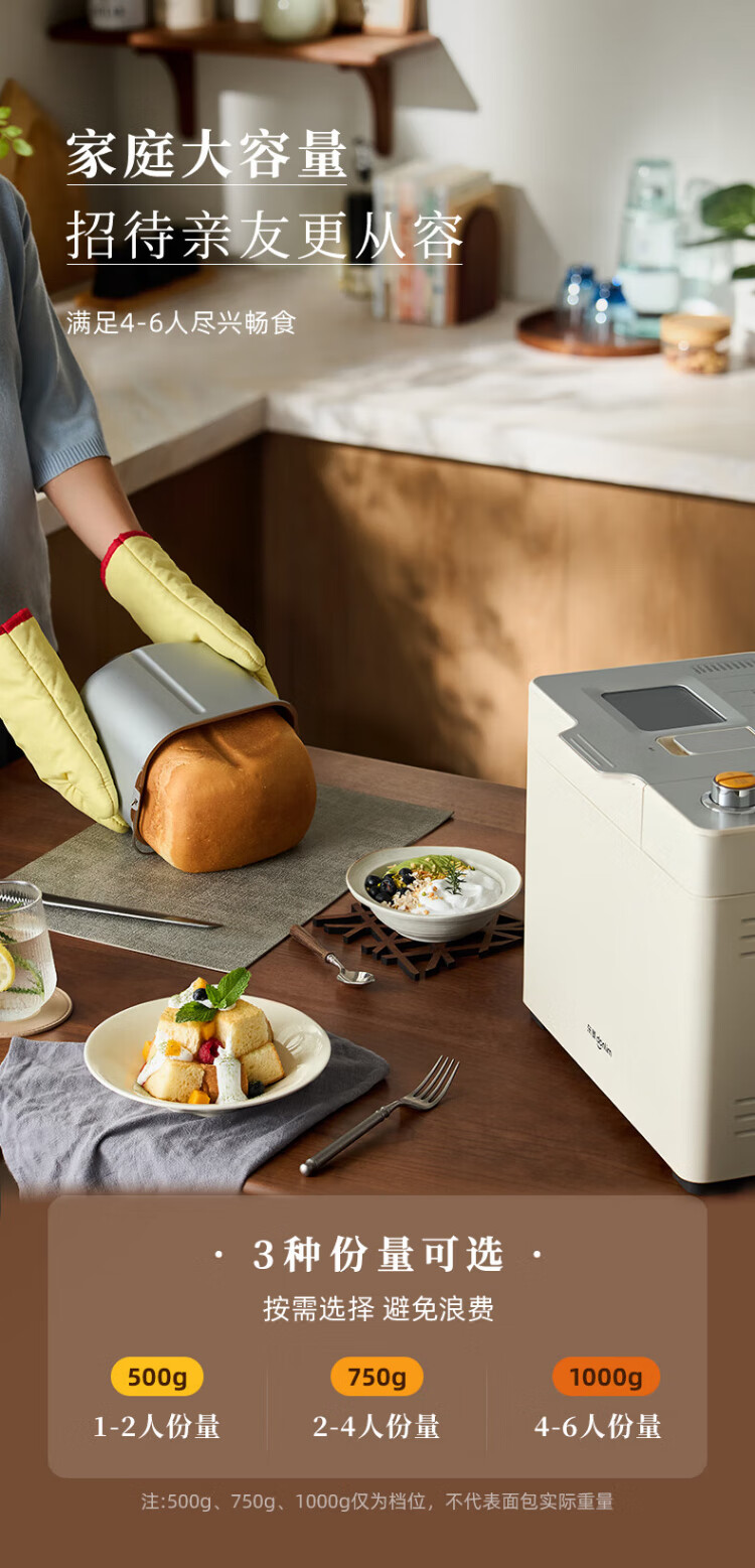 Donlim National Subsidy New Home Fully Automatic Sugar-free Bread Machine Large Capacity Intelligent Double Spreader Reservable Multifunctional Dough Mixer DL-1352 White