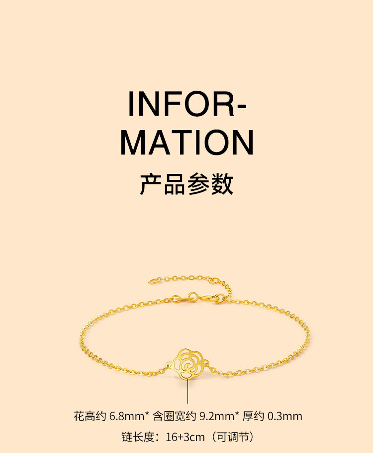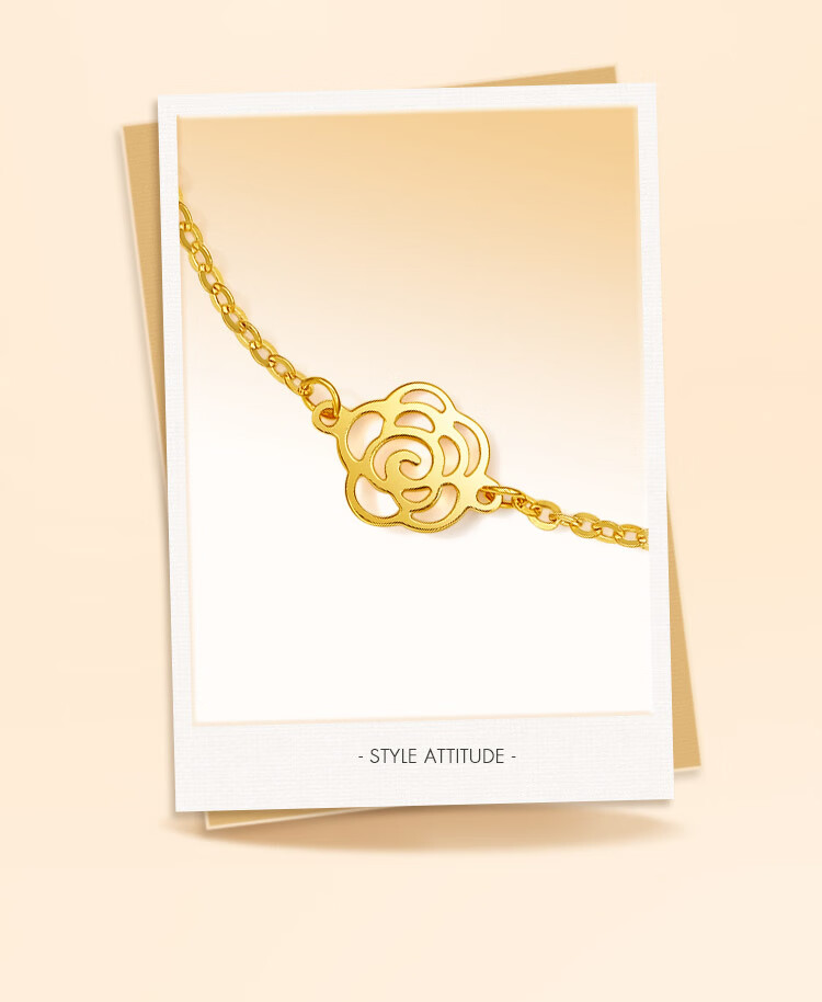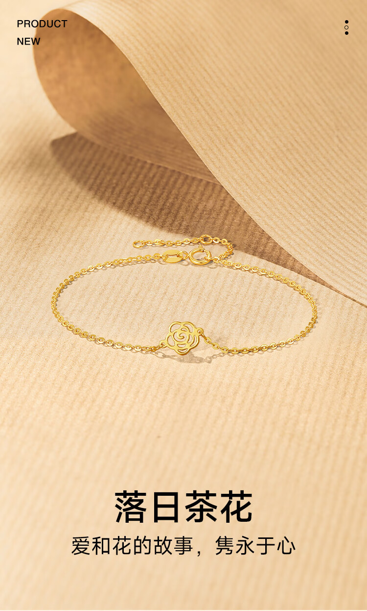 Saturday Fortune Yellow 18K Gold Bracelet Women's Sunset Camellia Gold Bracelet Birthday Gift C0713185 16+3cm