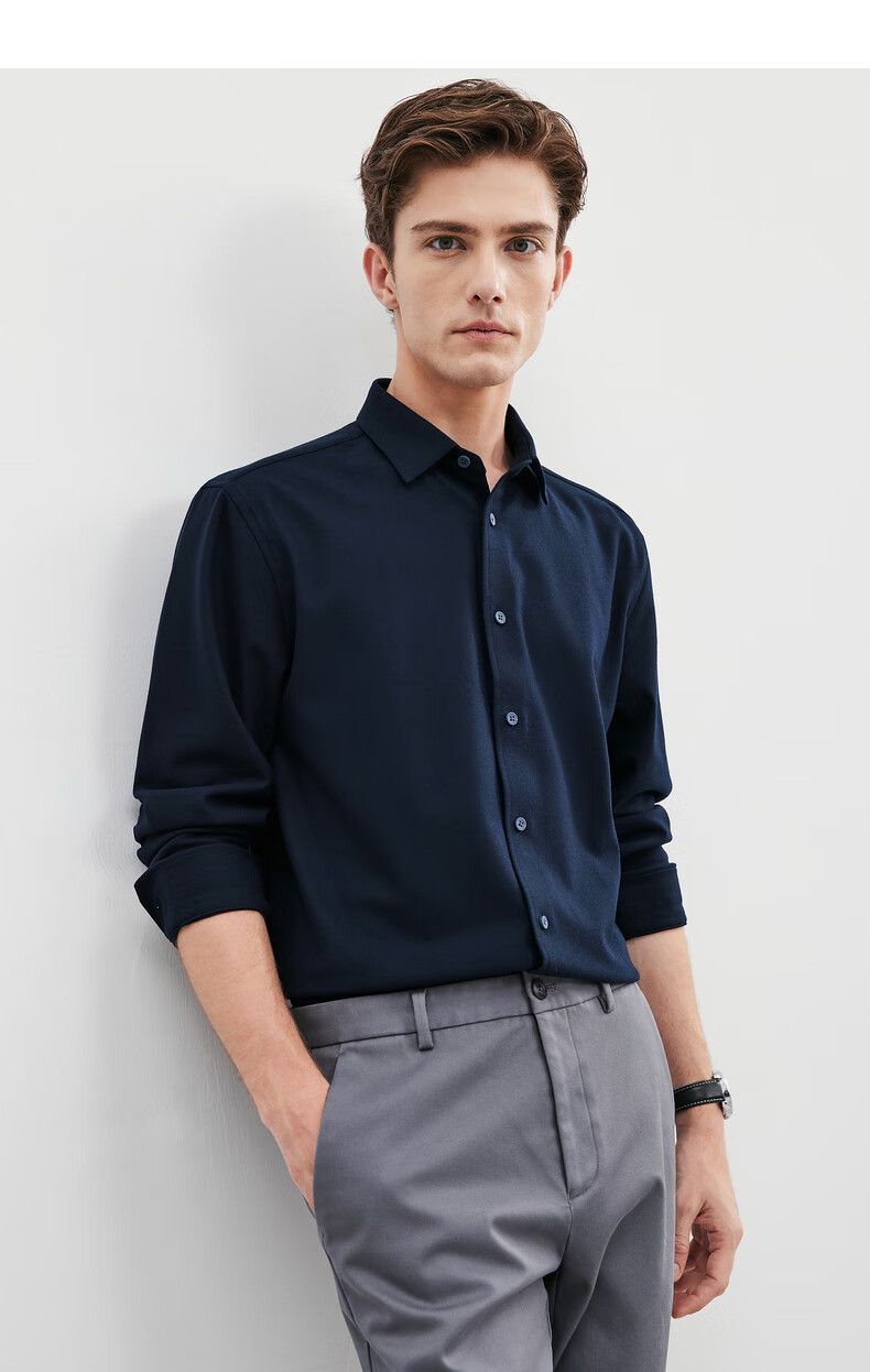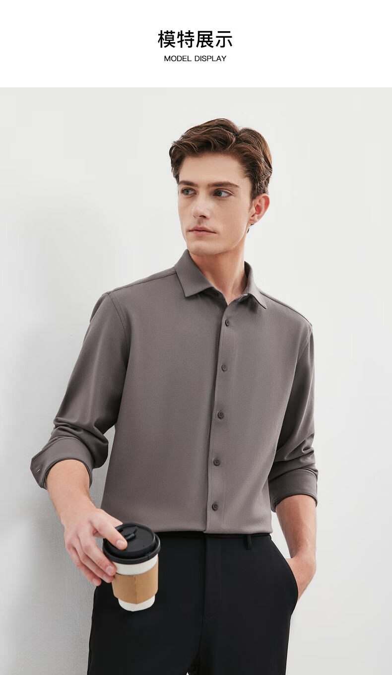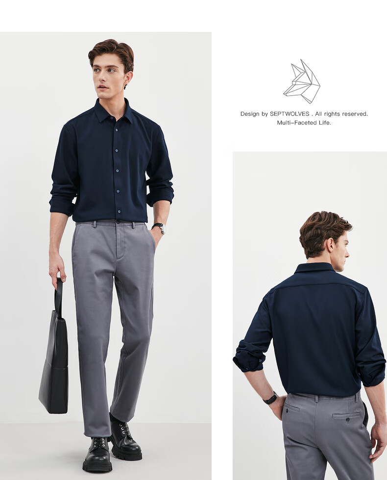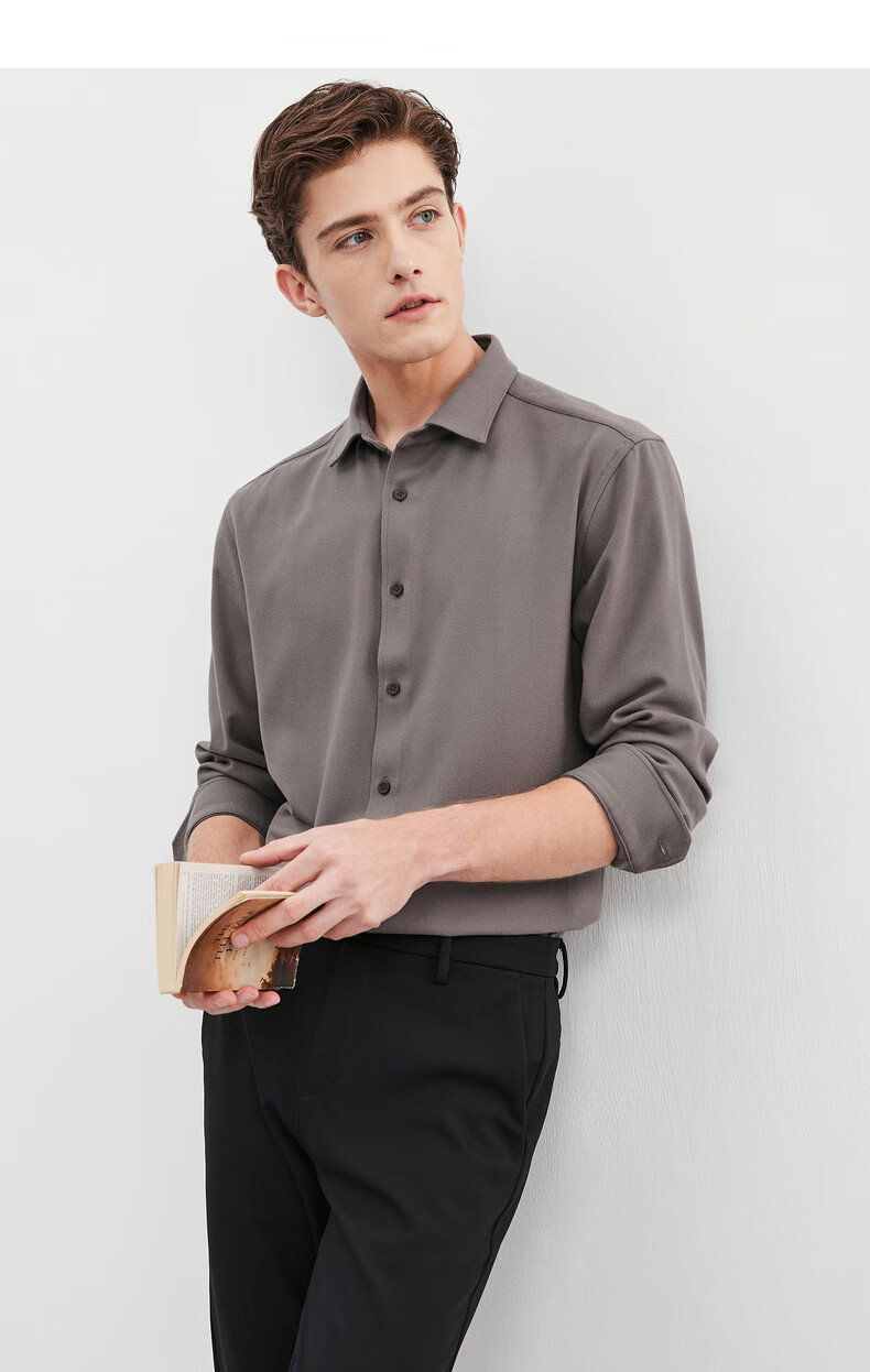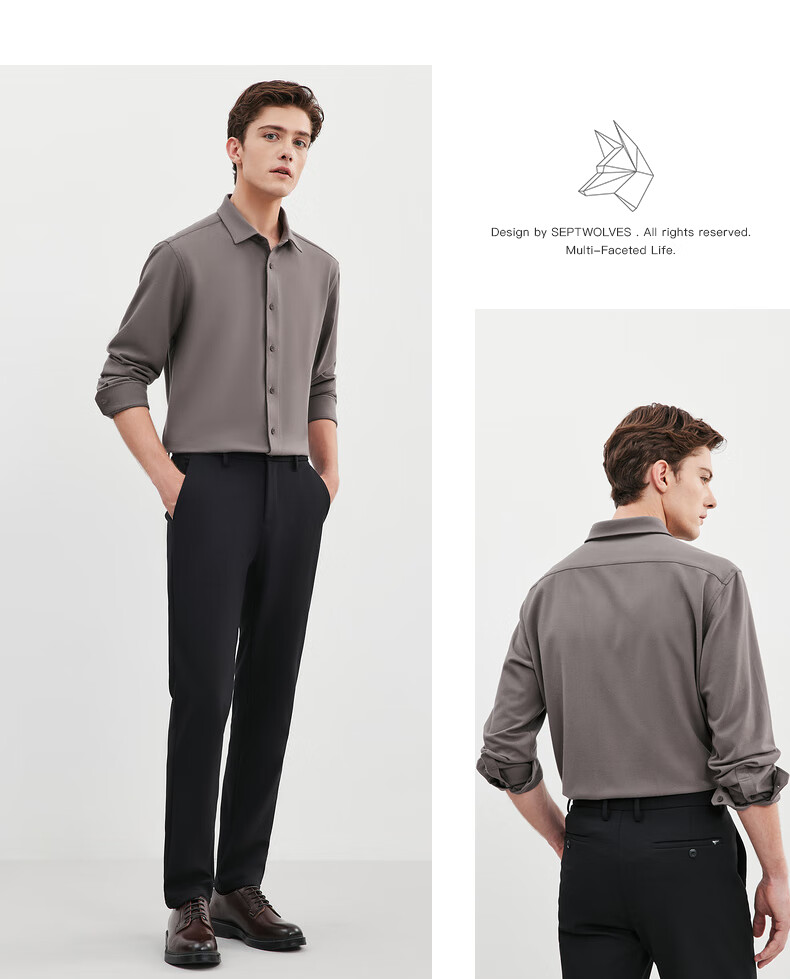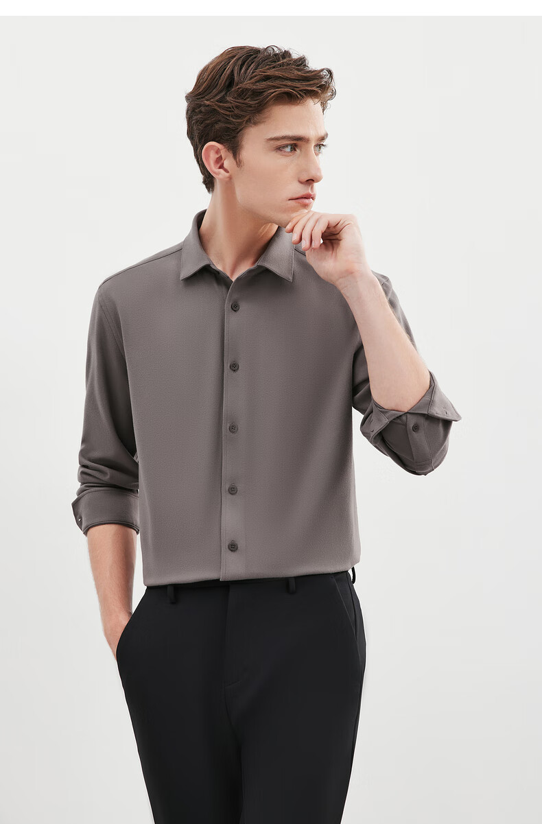 Septwolves long-sleeved shirt men's fall and winter double-sided velvet solid color lapel shirt with elasticity on all sides, comfortable, soft and skin-friendly men's clothing