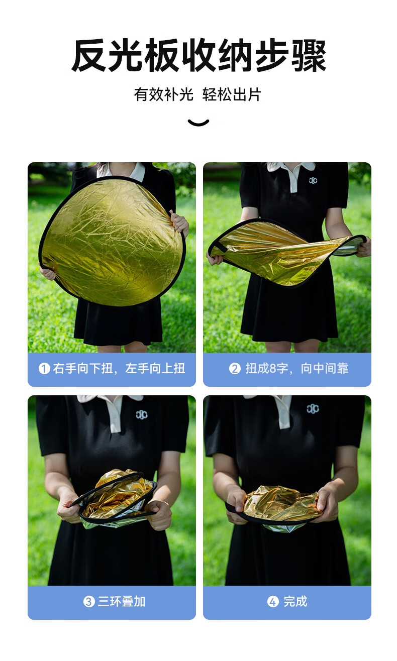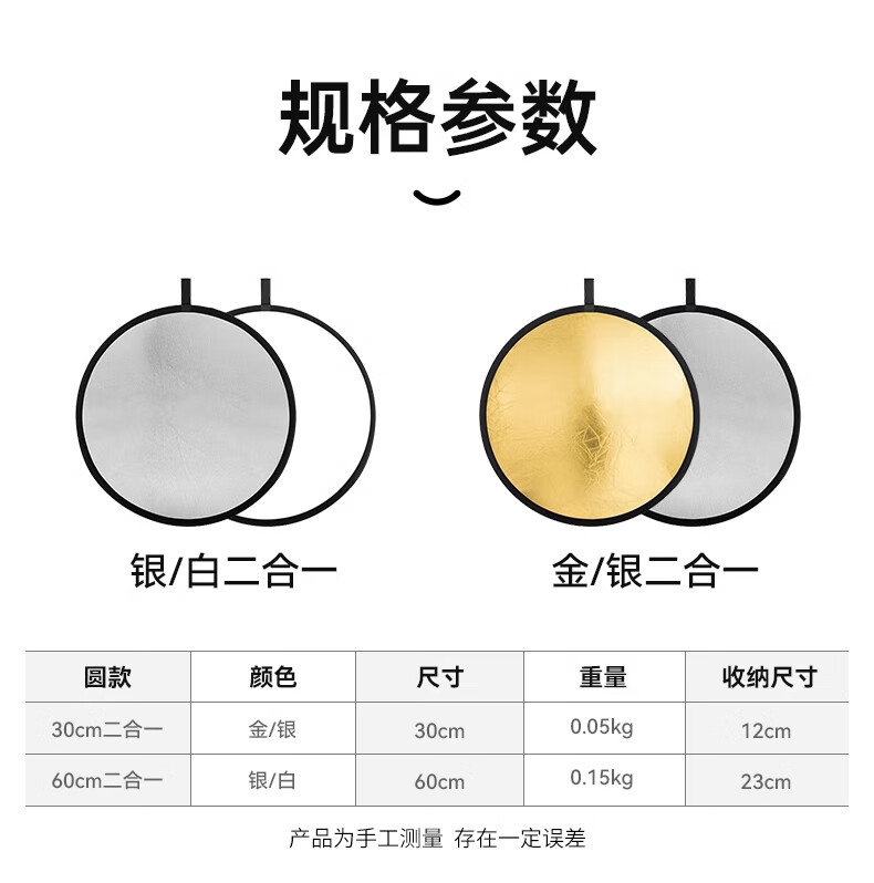 Dipur 30CM two-in-one reflector live photography portable fill light folding fill light board portable outdoor photo soft light board gold, silver, black and white lighting board shooting props