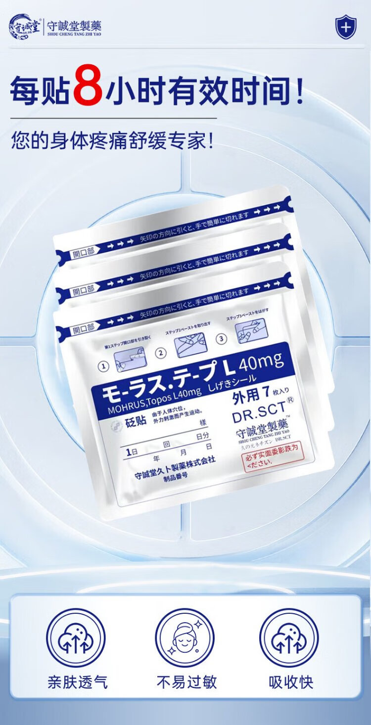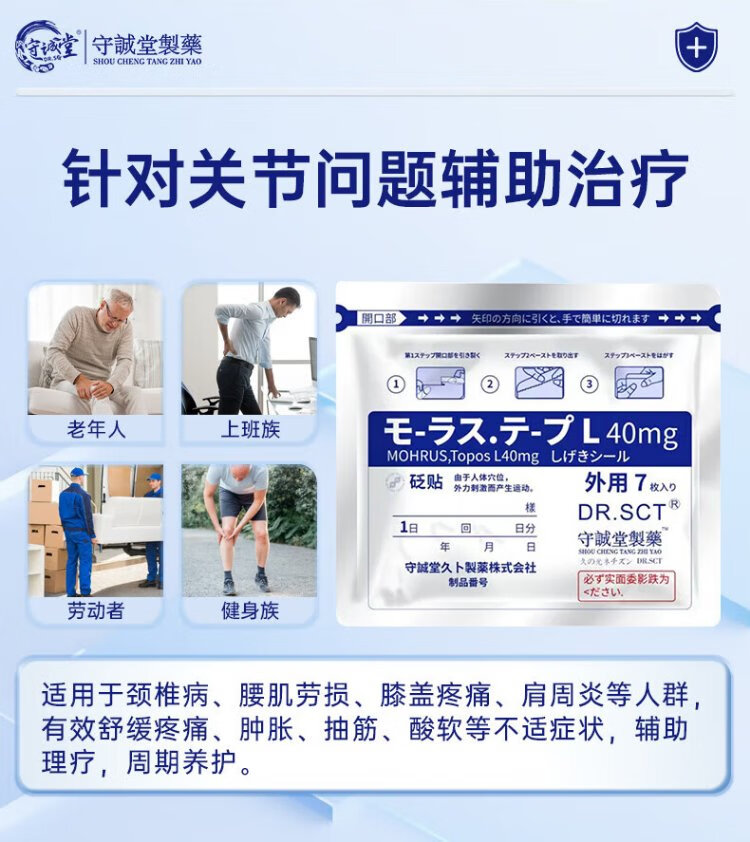 Shouchengtang Japanese Jiubu light-sensitive plaster patch for lumbar spine, knee joint, shoulder, cervical spine pain, lumbar disc herniation special patch