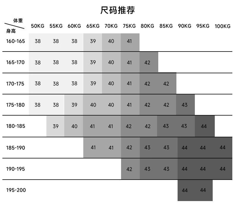 China (cm) 160-165/84-86 165-170 / 88-90 167-172 / 92-96 168-173 / 98-102 170-176 / 106-110