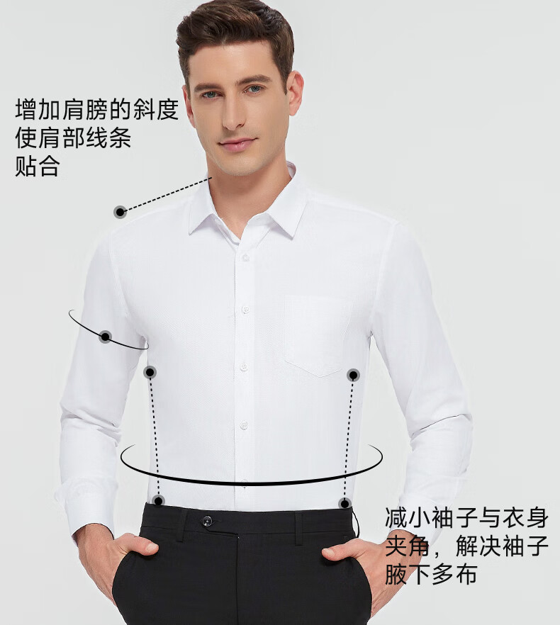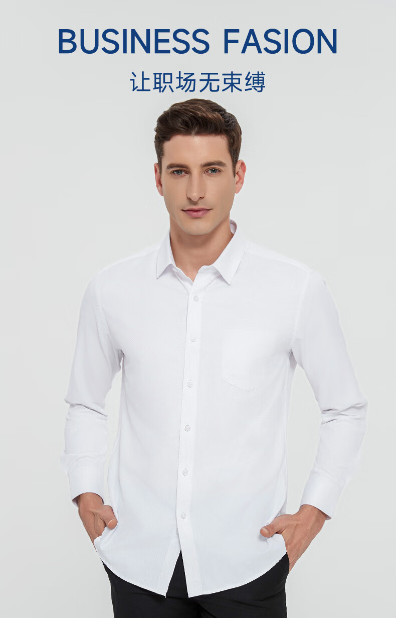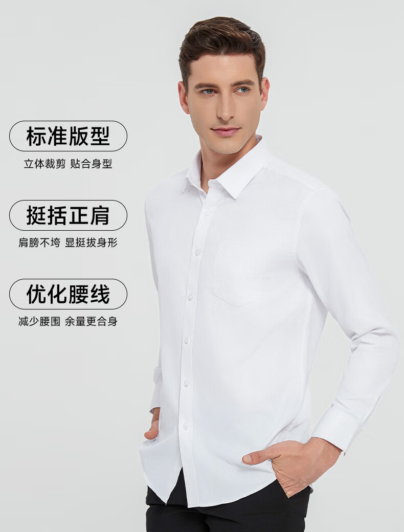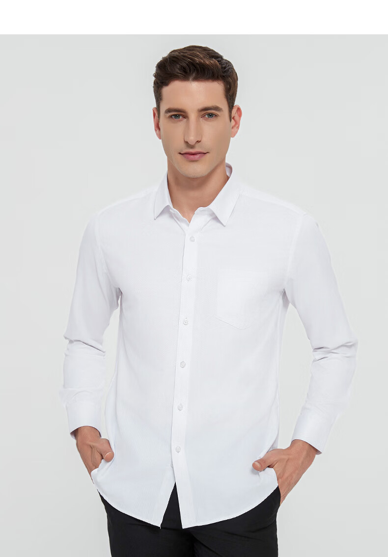 Romon long-sleeved shirt men's solid white shirt work business casual professional workwear formal shirt cardigan men's clothing